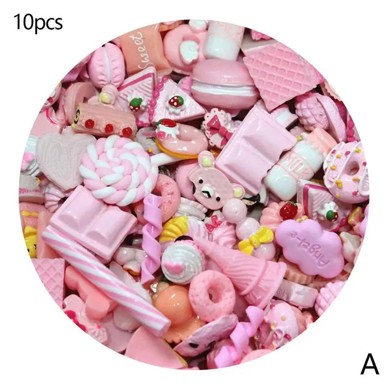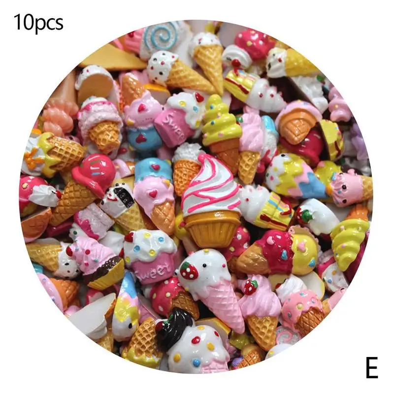 10pcs Diy Resin Charms Slime Supplies Additions Decor For Slimes All Filler Cute Cake Fruits Candy Phone Case Accessories