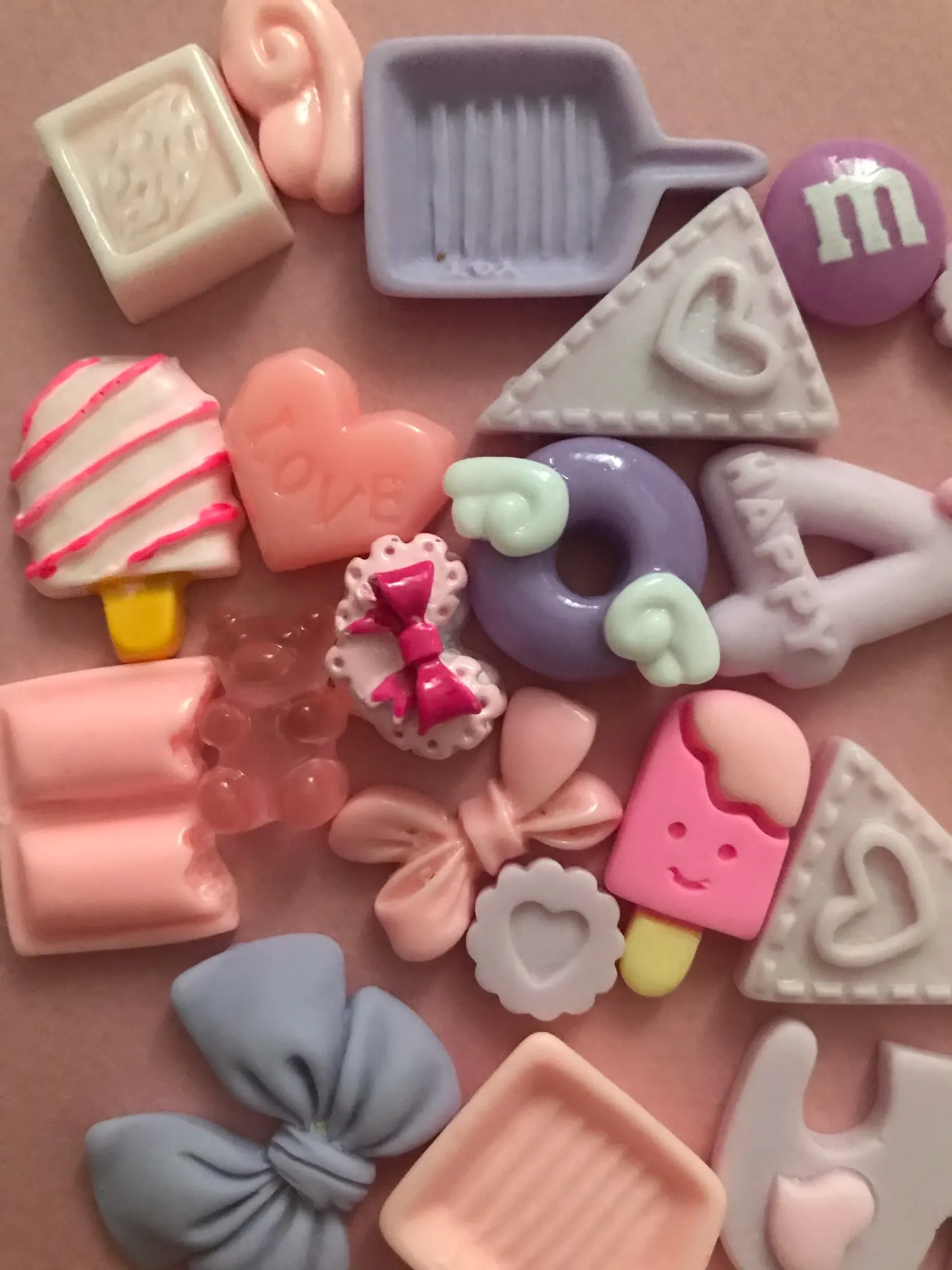Use: those resins are widely used in hair bow center, scrapbooking, embellishment, phone case decoration, all kinds of DIY
