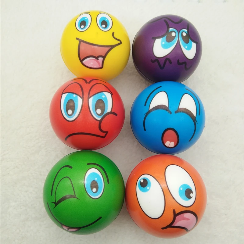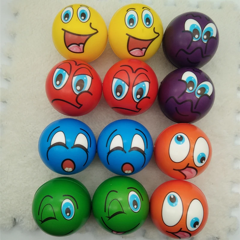 12pcs 6.3CM Cartoon Grimace Smiley Face Squeeze Ball Anti Stress Relief Ball Soft Rubber PU Foam Sponge Toys for Boys Kids