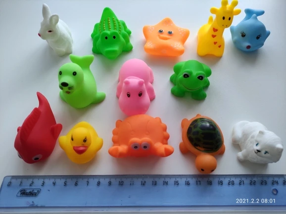 Toys came not exactly the ones in the picture, or those, but another color. Not critical. There is no smell, when washing with a sponge for dishes, the paint does not get off. In general, we are satisfied with the order with the daughter.