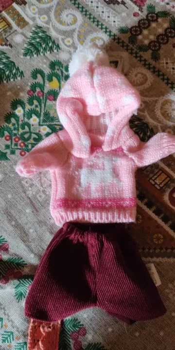 Excellent quality clothes! Pants have a small brown tail at the back. Sweater is a bit tight for a 30 cm doll with a soft body, but still looks good. Very satisfied with the order. Fast delivery. Thanks to the seller!