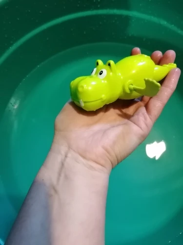 The toy is not bad. Size medium. First the spring is проскальзывала, I had to disassemble, be ready for this. And so, in general, an interesting option to take a child in the bathroom. Take it.