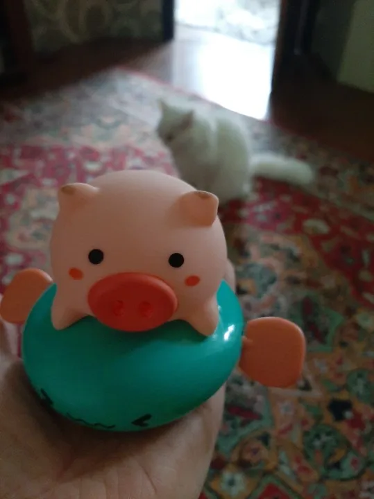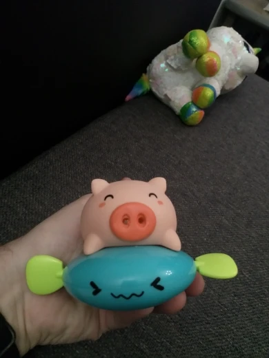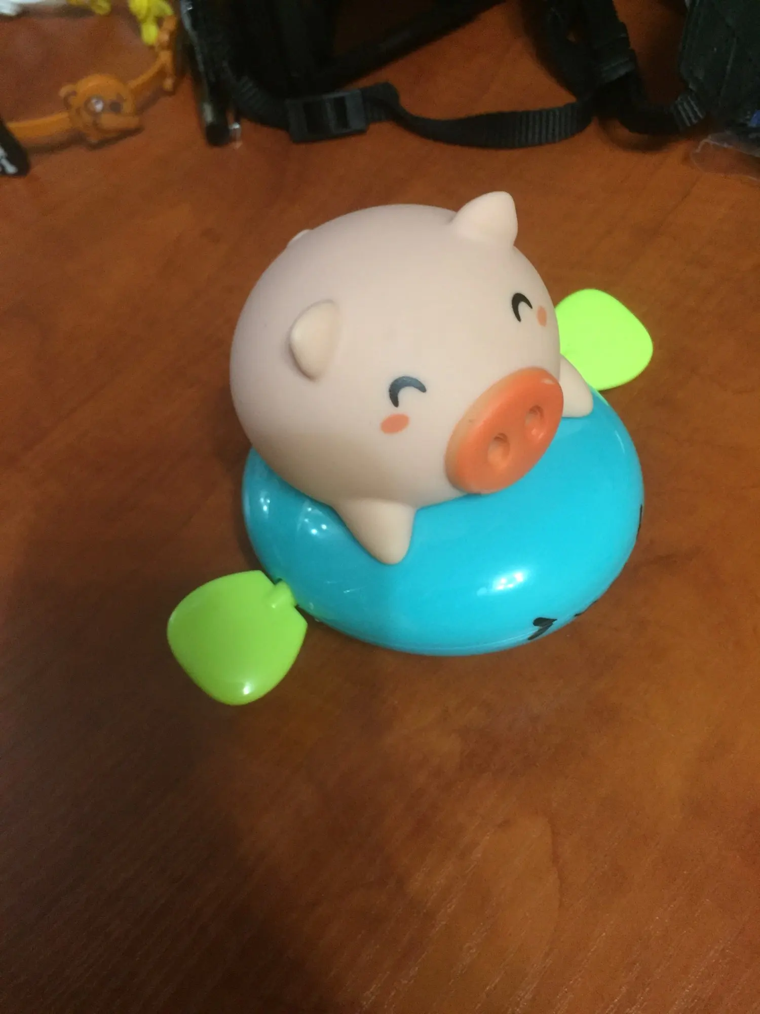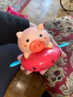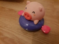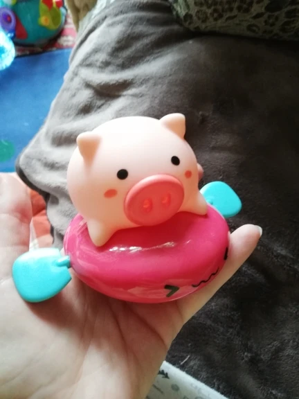 Very cool pig! Pretty big. From the nose it’s funny to splash) the lace is really short, but nothing. Without water, the child was afraid of noise)) but in the water is excellent!
