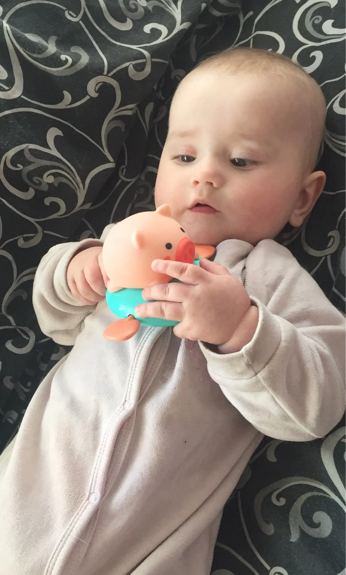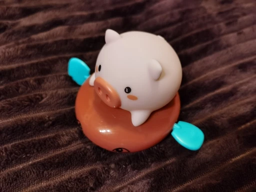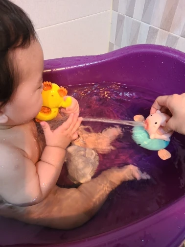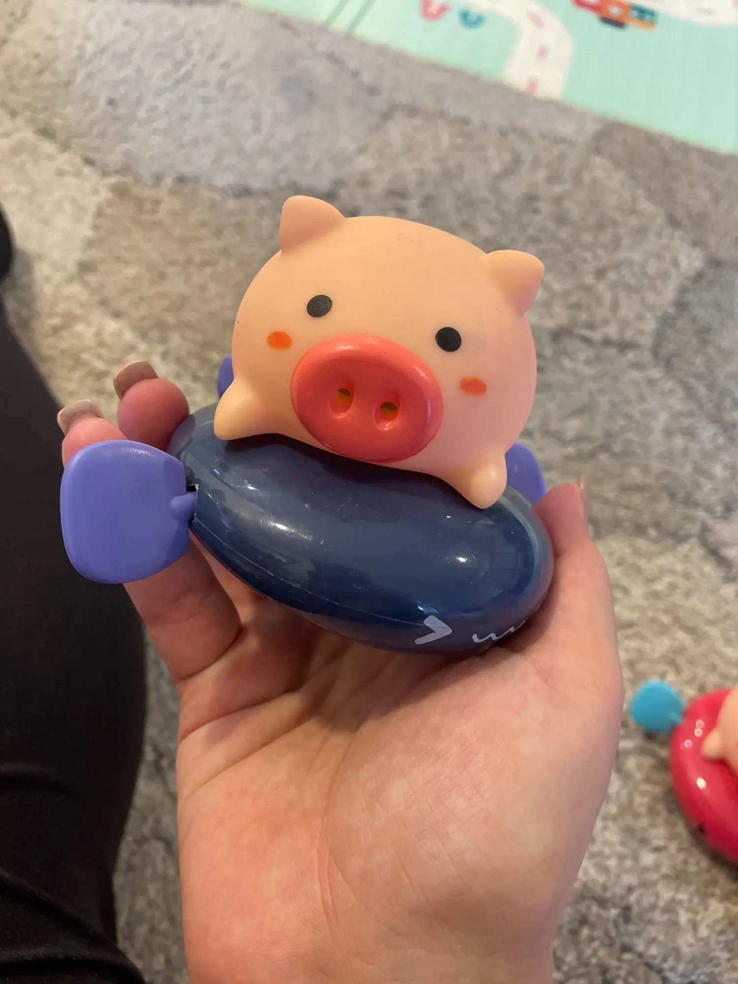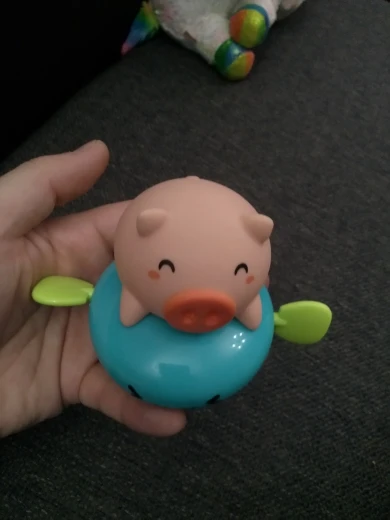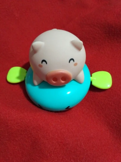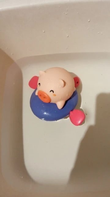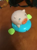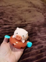 Хрюшка хороший, вода также из носа брызгает. Немного перевешивает тяжесть если хрюшка плывет на скате, так как он большой. Но нам не критично. В ванне отлично играть и получается две игрушки в одной.