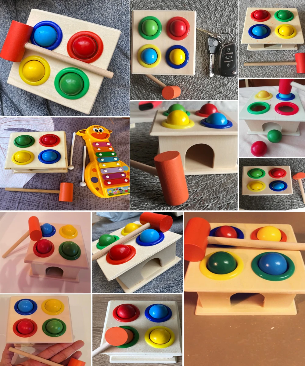 Item: Baby Colorful Ball + Wooden Hammers Hammer Box Early Learning Educational Toys