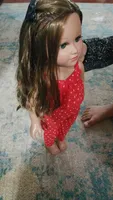 Посылка дошла за 3 недели до Московской области. Трек отслеживался. Замечательный комбенизон. Ткань приятная на ушубпь. Сшито хорошо, нитки не торчат. Единственный минус, это очень прозрачное. А так всем довольна, спасибо продовцу. Подошло куклам 62 см и 60см