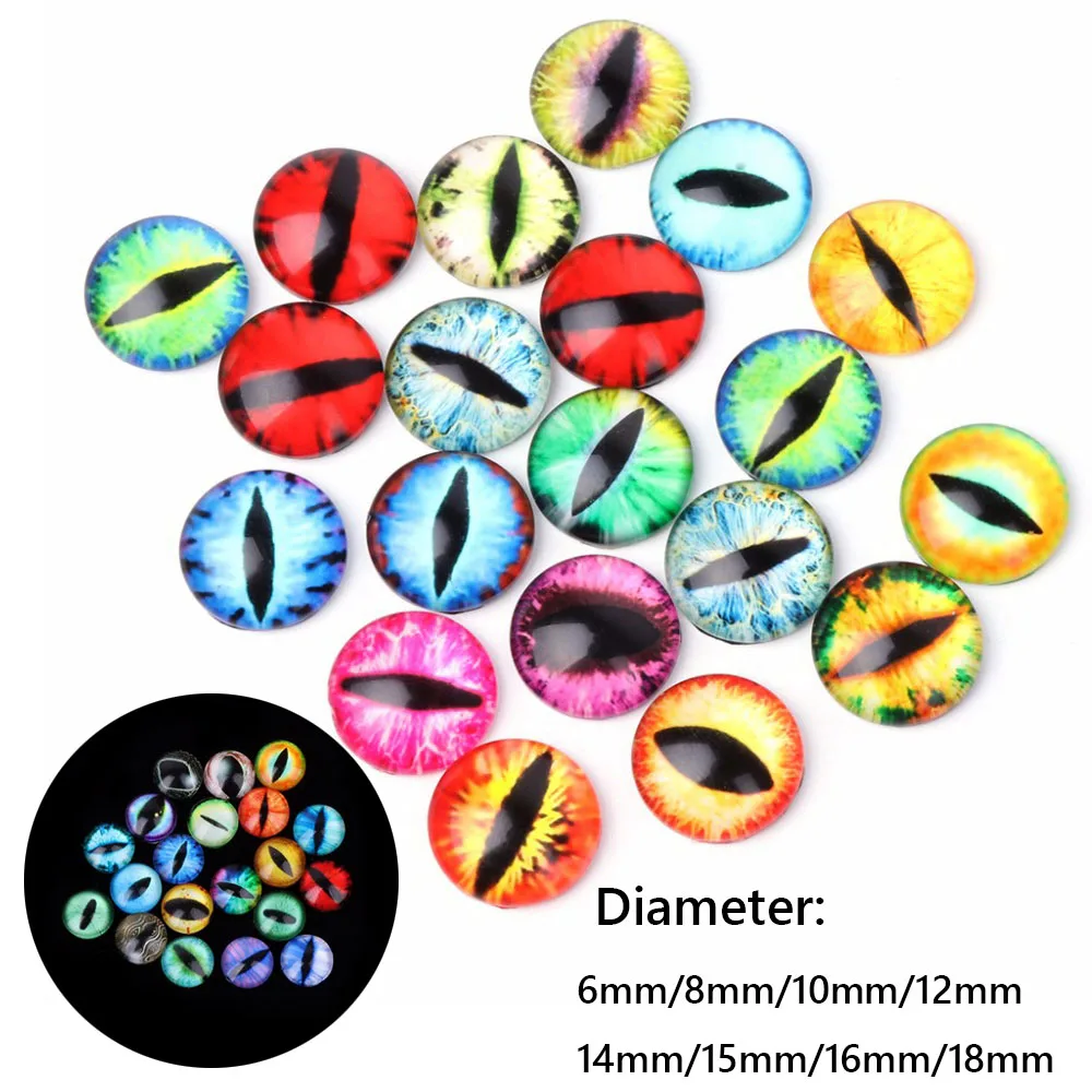 20pcs 6/8/10/12/14/15/16/18mm Glass Dolls Eyes DIY Crafts Eyeballs Toys for Children Dinosaur Animal Eyes Time Gem Accessories