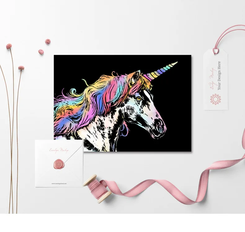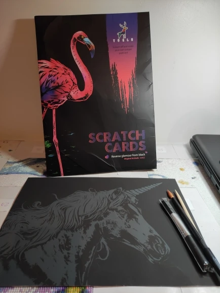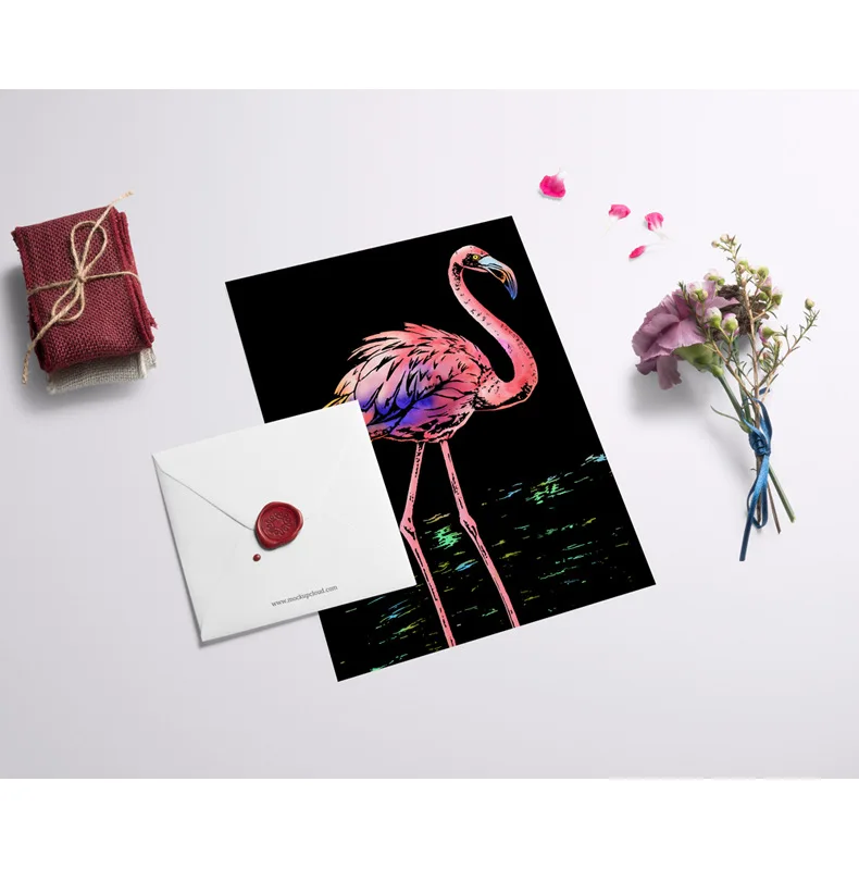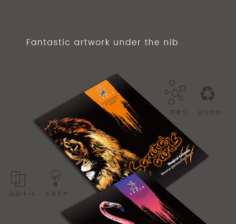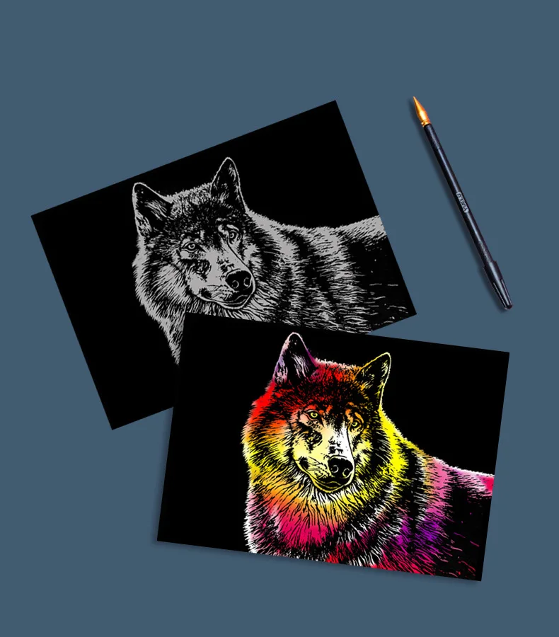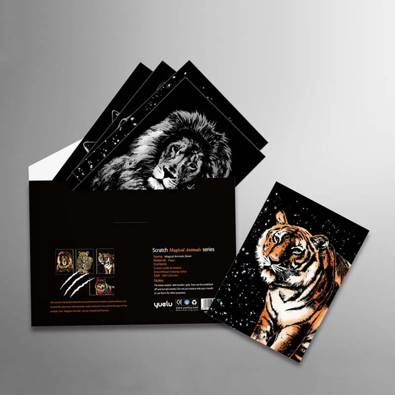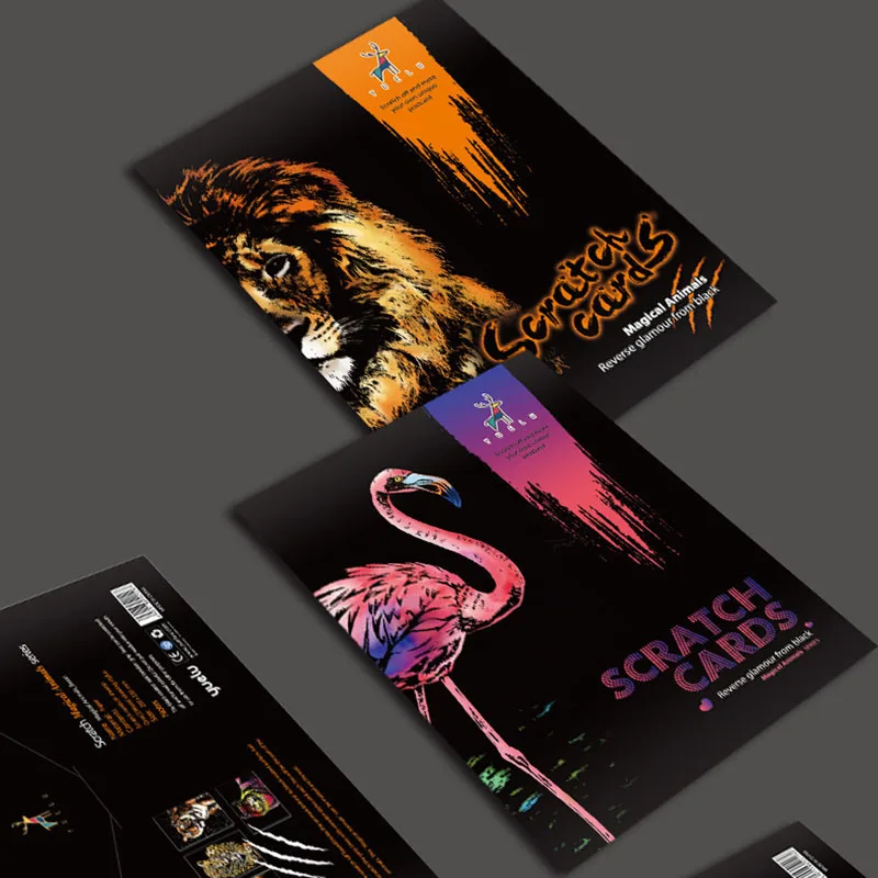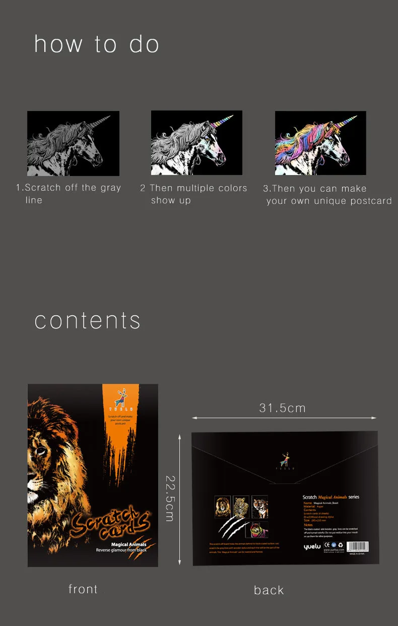 4 Pcs/Set A4 DIY Manual Scraping Painting Colorful Realistic Cartoon Animals Lion Wolf Flamingo Night View Scratch Drawing Toys