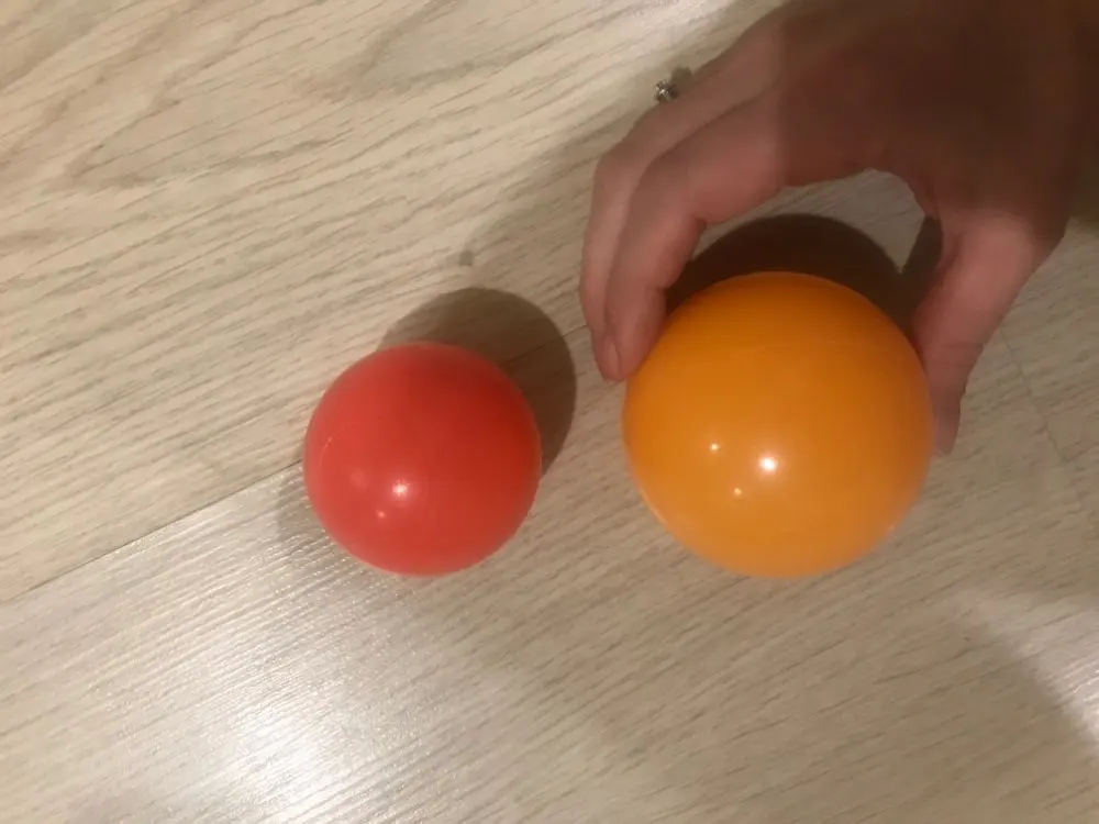 Excellent balls, in photo 100 large (7 cm) and 100 small (5,5 cm) delivered in a month, everything is fine. Balls are soft, do not smell.
