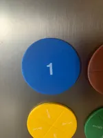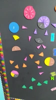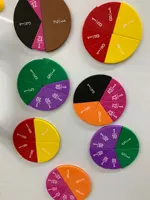 Round fraction card contain 1, 1/2, 1/3, 1/4, 1/5, 1/6, 1/8, 1/10, and 1/12, total 51pcs of magnetic segments with numbers on.