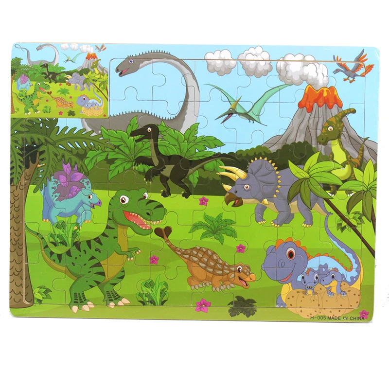 60 Pieces Wooden Puzzle Kids Toys Baby Wood Jigsaw Puzzles Cartoon Jurassic Dinosaur Animal Early Educational Toys for Children