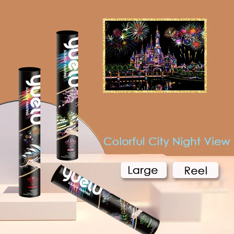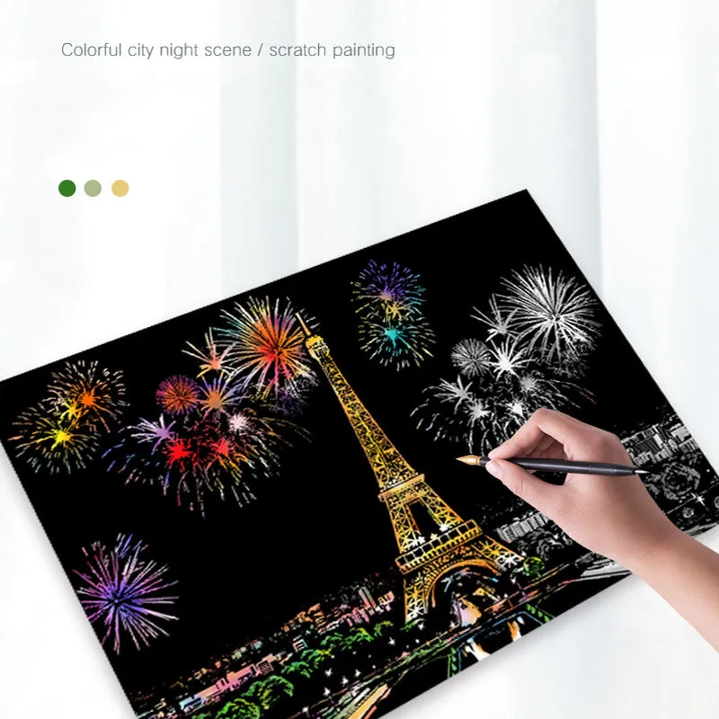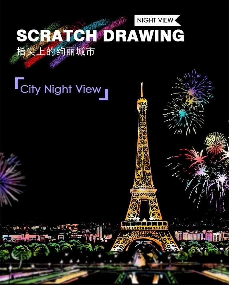 75*52 CM Large Reel Scraping Painting DIY Manual World Famous Landscape City Night View Magic Scratch Art Paper Drawing Toys