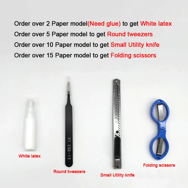 Note: Please read the teaching in the text and photos carefully. If you are ordering the No-glue series, this is a interlocking for construction paper model, Order over 2 pcs we don’t give White latex, please skip the teaching about glue.
