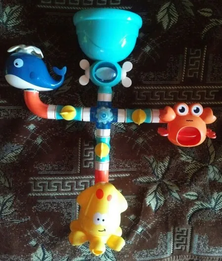 Bath Toys Pipeline Water Spray Shower Game Shark Crab Octopus Bath Baby Toy for Children Swim Bathroom Bathing Shower Kids Toy Size:34*32CM(13.39*12.6in) Material:ABS Features: PvC strong suction cups, suction cups for flat objects such as bathrooms, bathtubs, etc. are equipped with suction cups on the upper back to increase the suction force and make it difficult to pull out