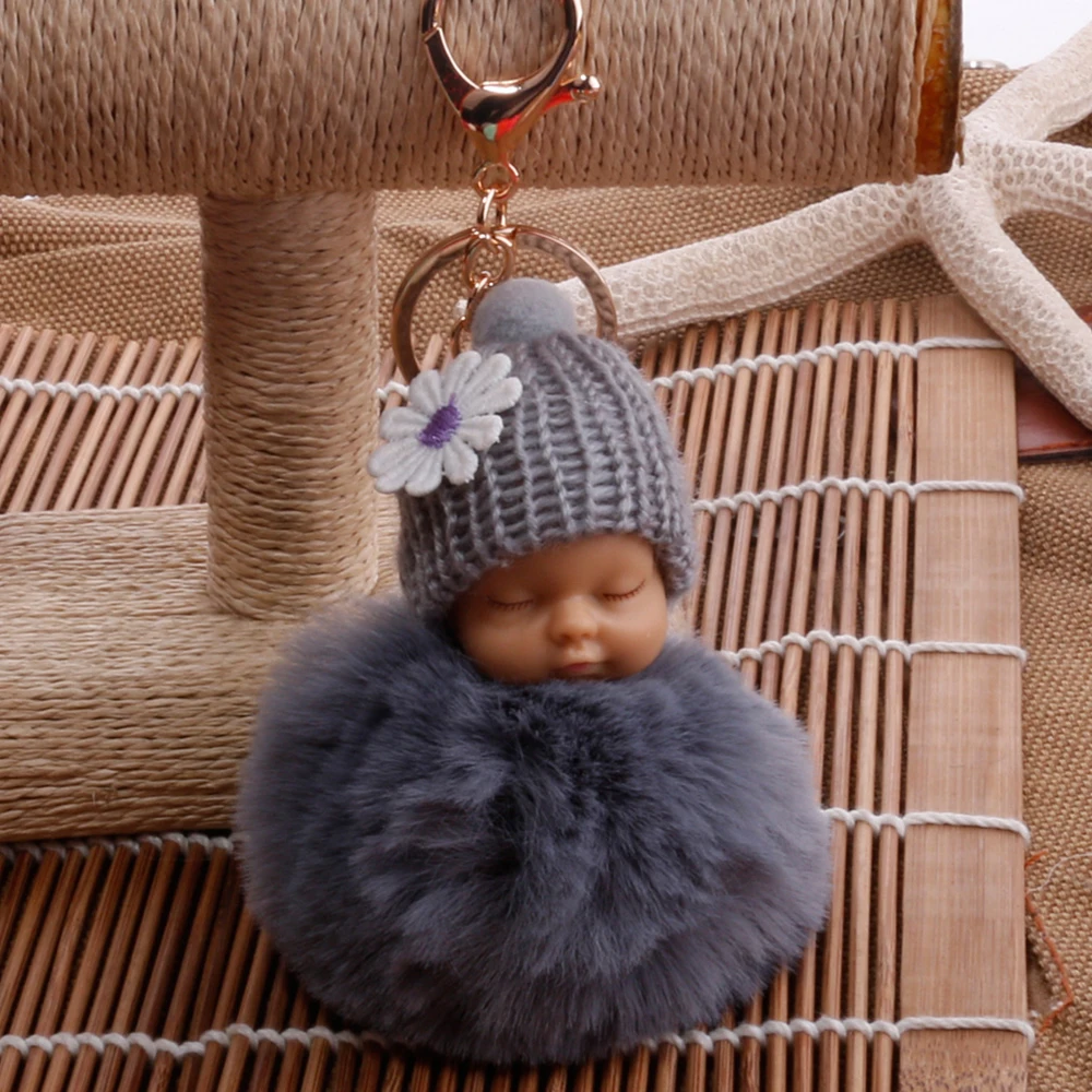 Be the first to review “Baby Doll Toy DropshipCute Sleeping Baby Doll Key Chains For Women Bag Toy Key Ring Fluffy Pom pom Faux Fur Plush Keychains”