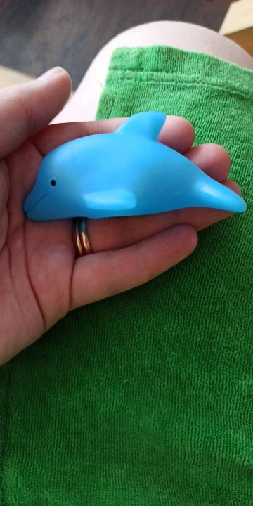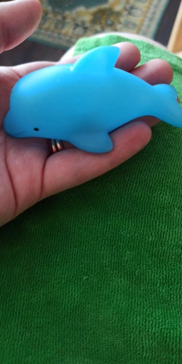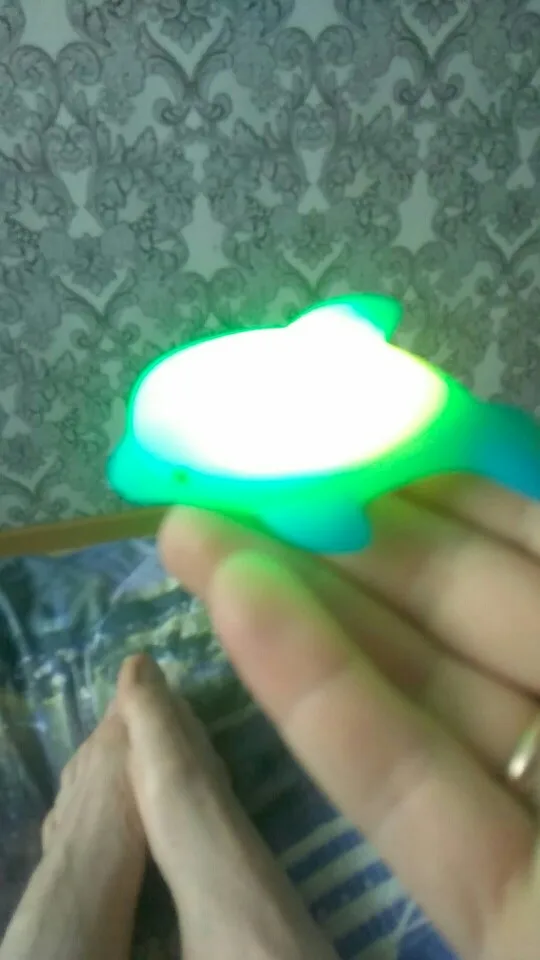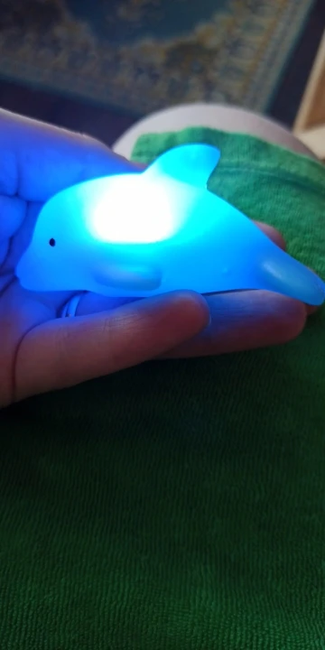 Долгая доставка, почта России как всегда. Дельфин светиться 10 секунд. Нажимается туго. Ребёнок сразу с ним