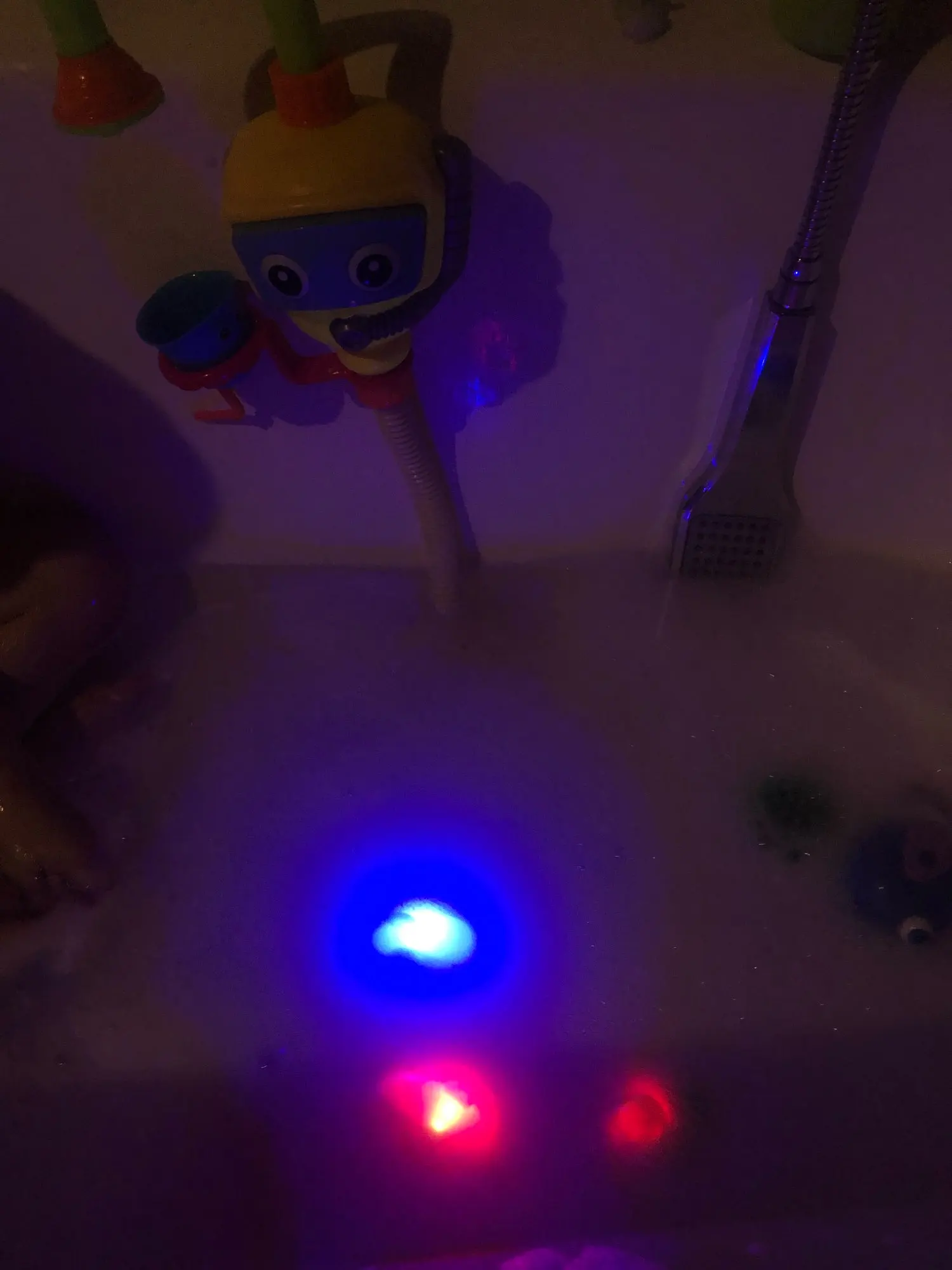 Excellent toy for the bathroom! The child is very happy! Glows in different colors in different modes! Thanks to the manufacturer, well done