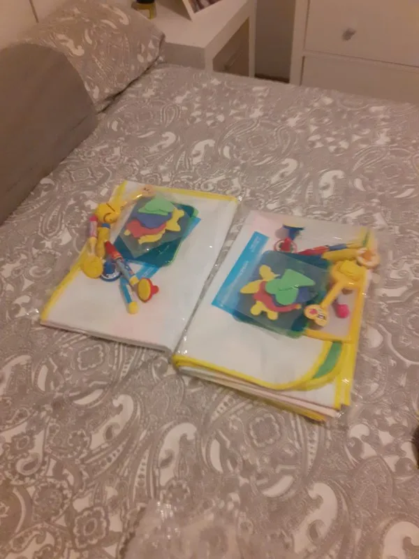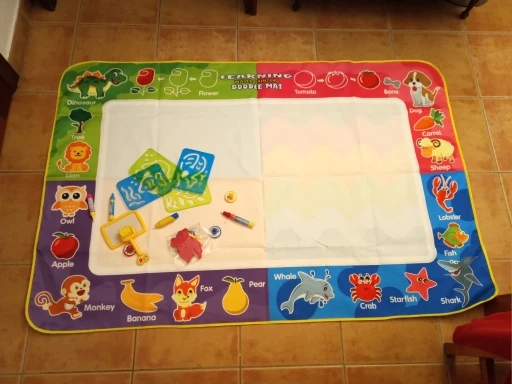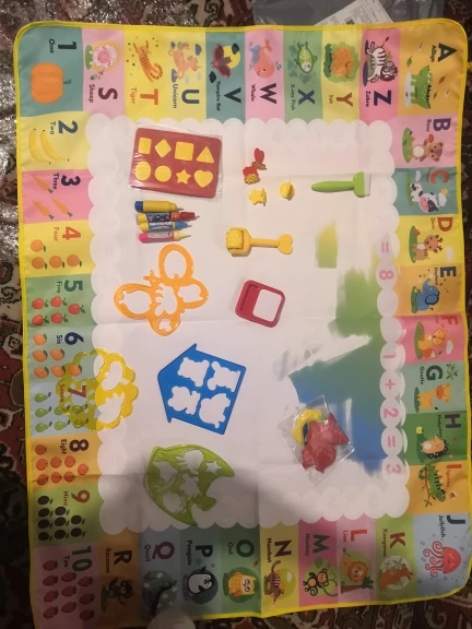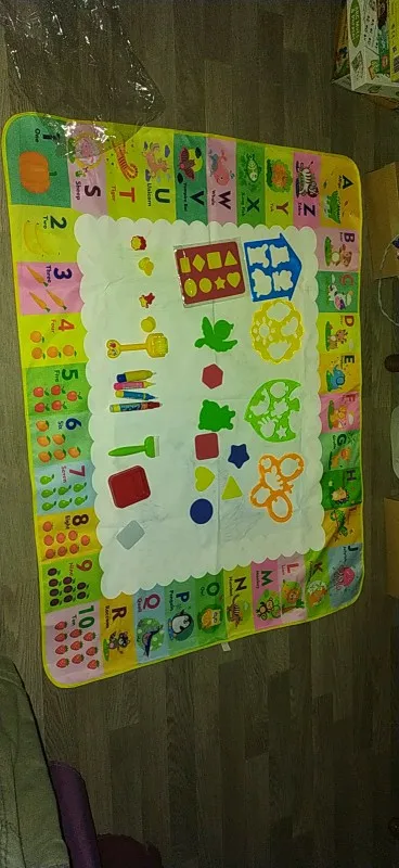 Carpet beautiful colorful, top quality. Just like in the picture. All מתמלא במיים, solution משגעה לעשיק the child. Full options for the game. There are also Notebook שמלמדת to draw the right stages. Highly recommend the seller. fast shipping.