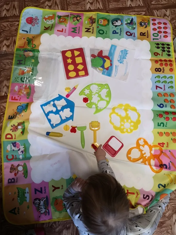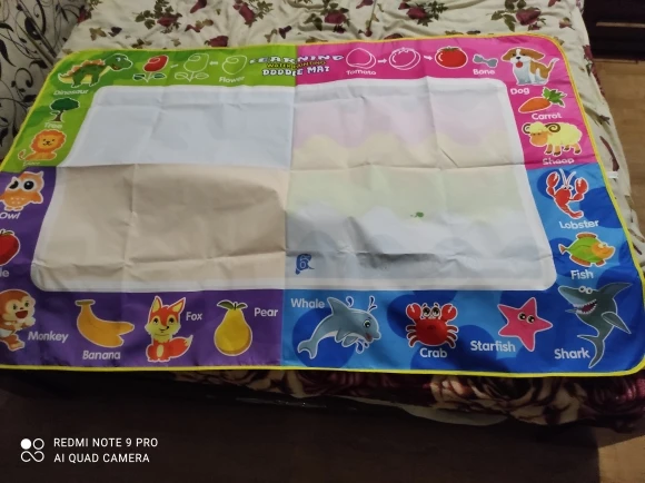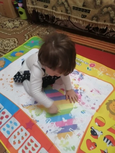 Great mat! As in the picture!! Children are very, very satisfied!! Do not tear it off! Draw and paint! I recommend from the heart! Very useful for children’s creativity, and diverse! That only these Chinese will not come up with! Well done!