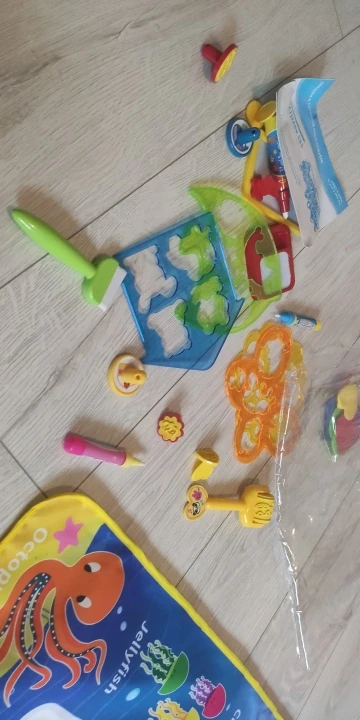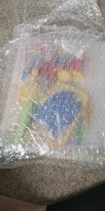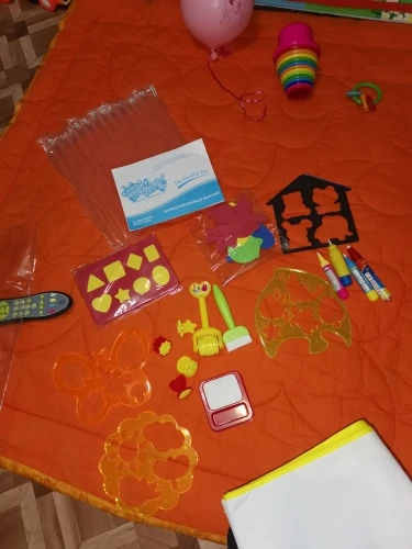 Everything was neatly packed. All stencils, markers and components are whole. While the child tries everything on the tooth) the order is very satisfied, as well as the price, on wilberiz, such mats are more expensive. As a gift there were two rubber proteins