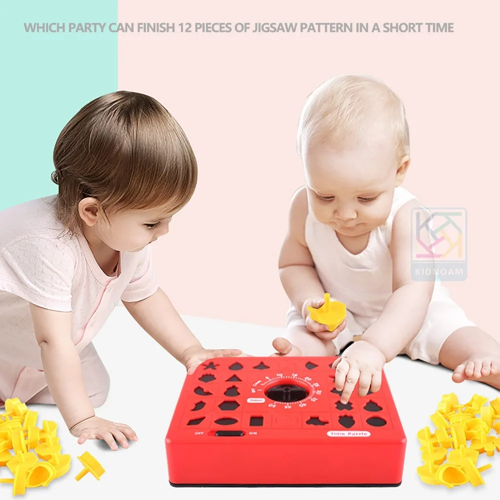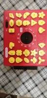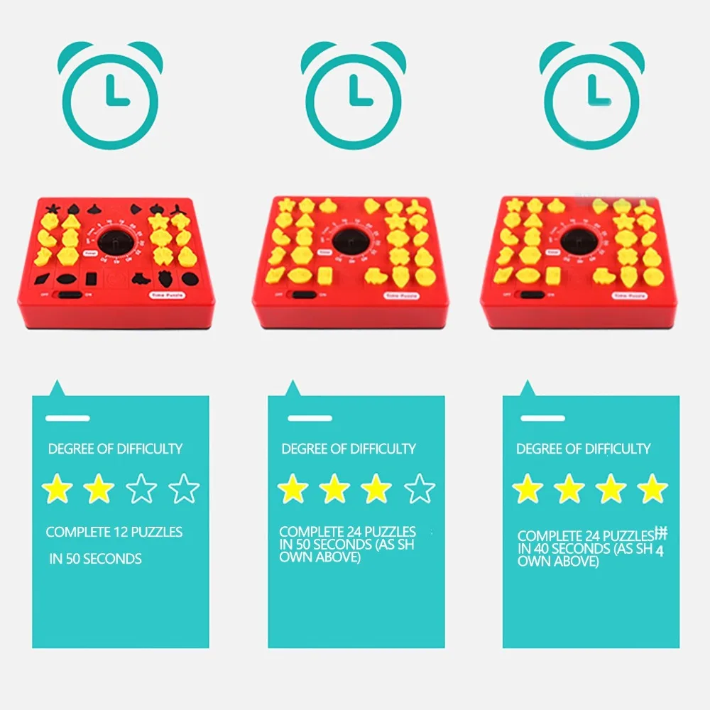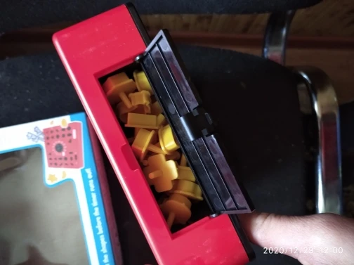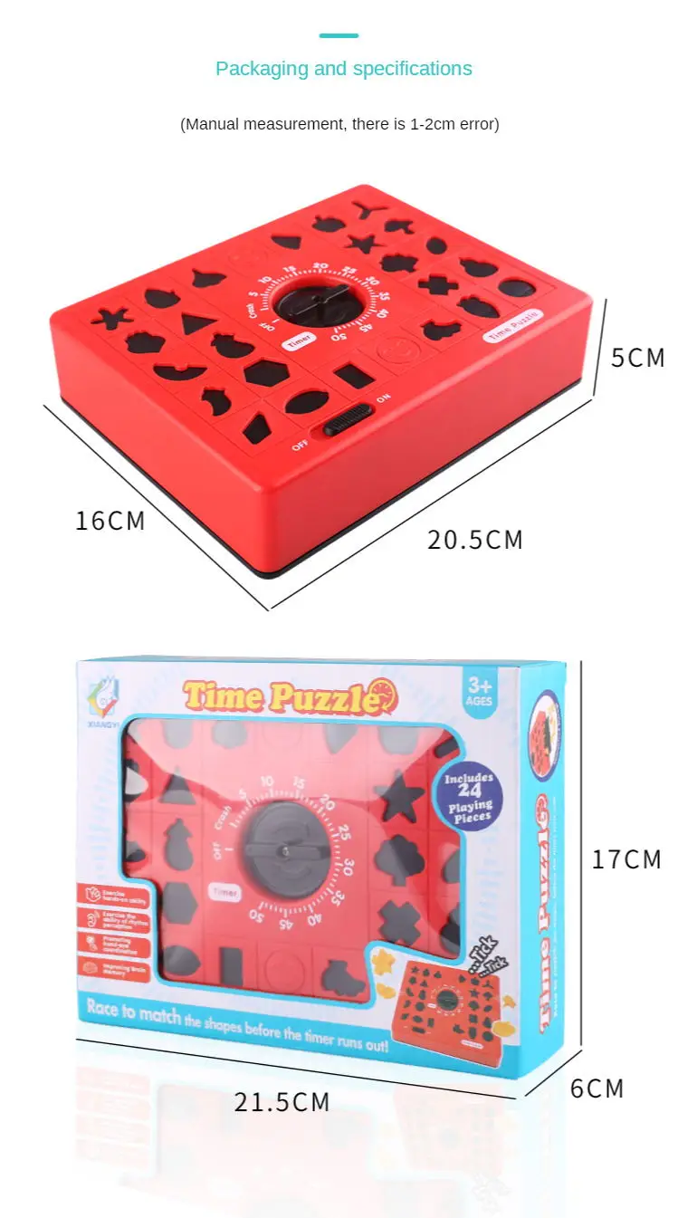 Игра небольших размеров, мне на картинке показалось, что коробка чуть больше. Товар полностью соответствует. Пластик прочный без запаха. Желтые вкладыши- маленькие, как раз под детские пальчики. Таймер достаточно громкий. Попробовала собрать сама вкладыши, получилось не с первого раза)) в целом товар хороший- рекомендую