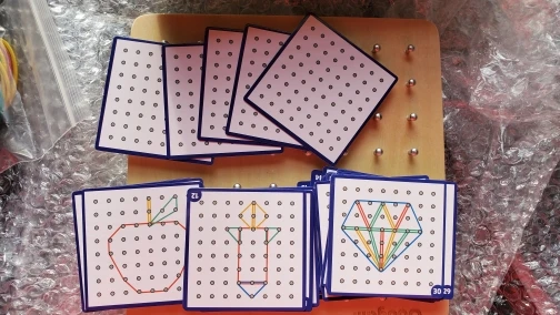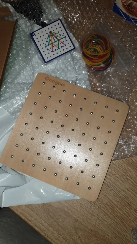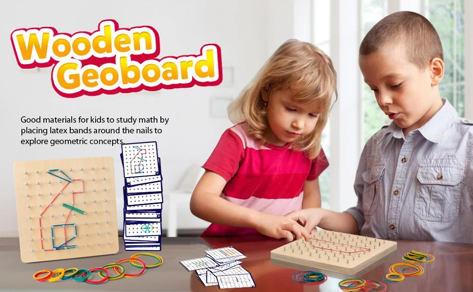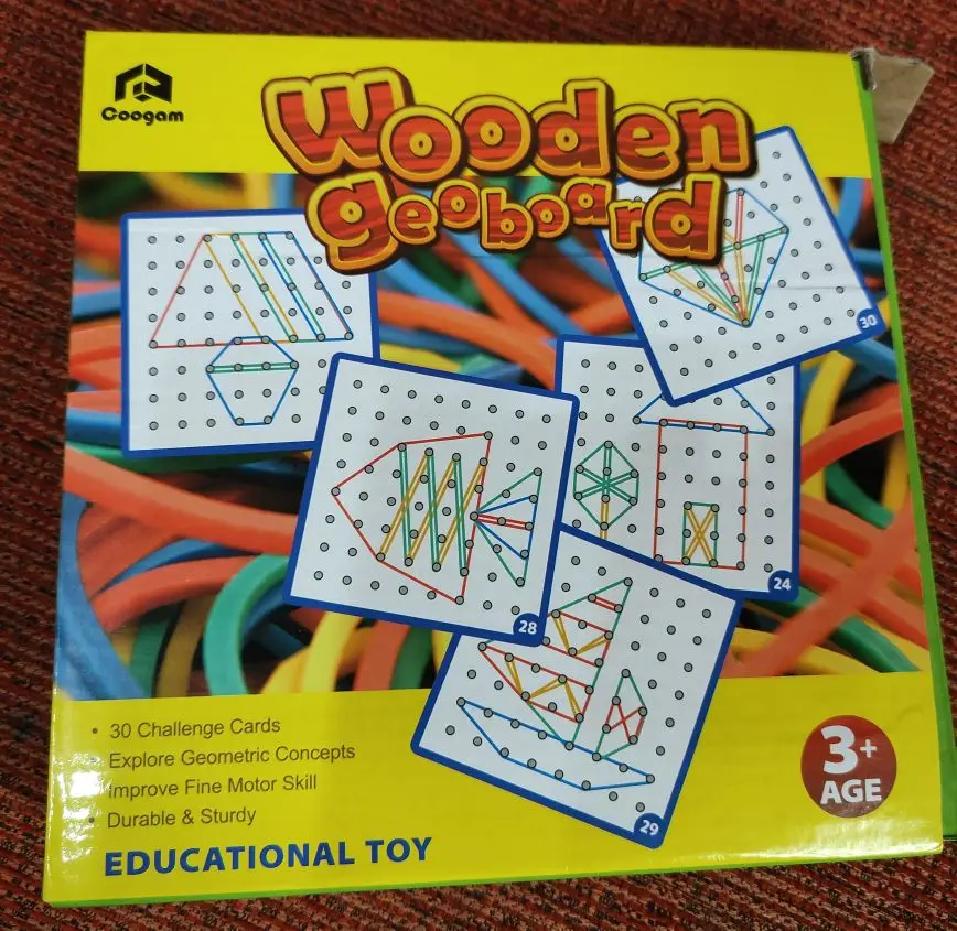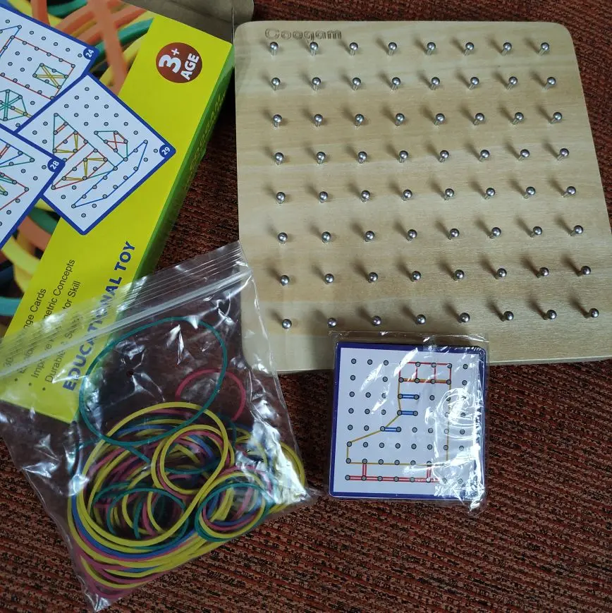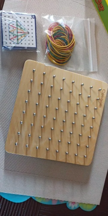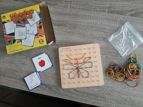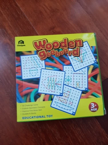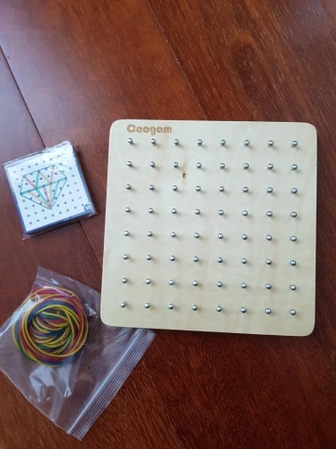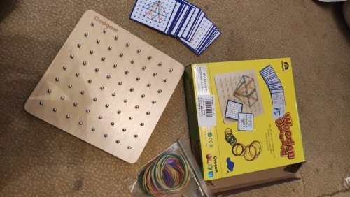 20 reviews for Coogam Wooden Toys Geoboard Mathematical Manipulative Block-30Pcs Pattern Cards Geo Board with Rubber Bands STEM Puzzle for Kids