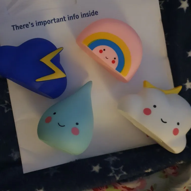 Original Bath game, it seems solid on the other hand a little hard for children especially the white cloud maybe it is necessary that the material works and relaxes to be able to press easily and bring out the water, no communication with seller, fast delivery time. Thanks to the whole team.
