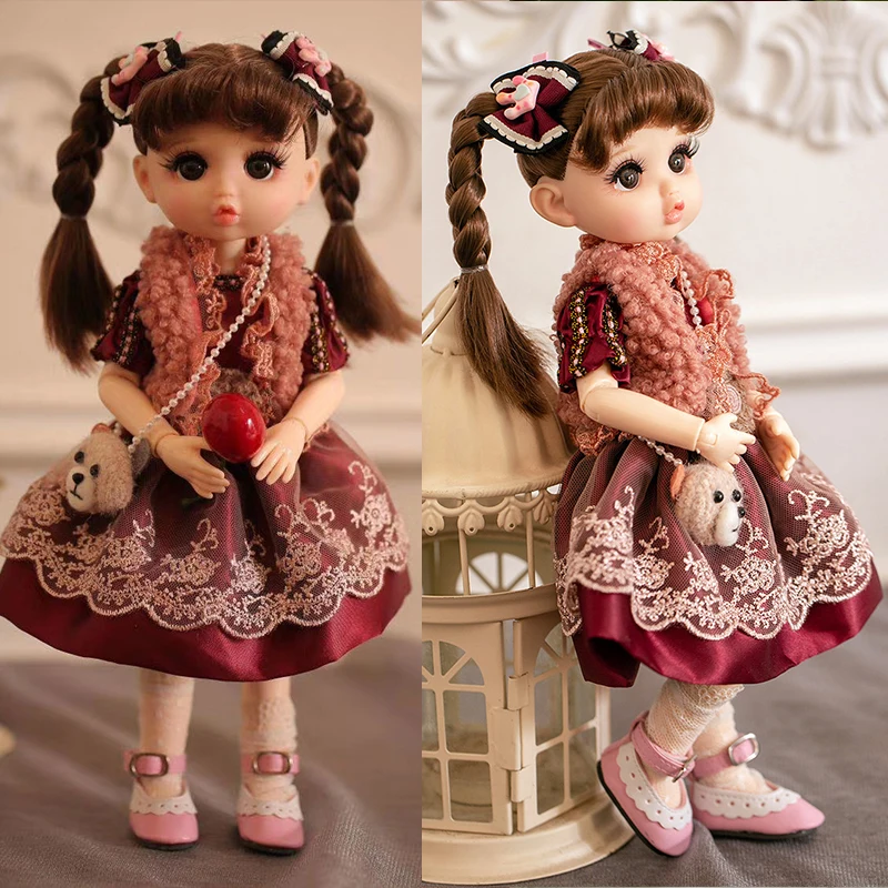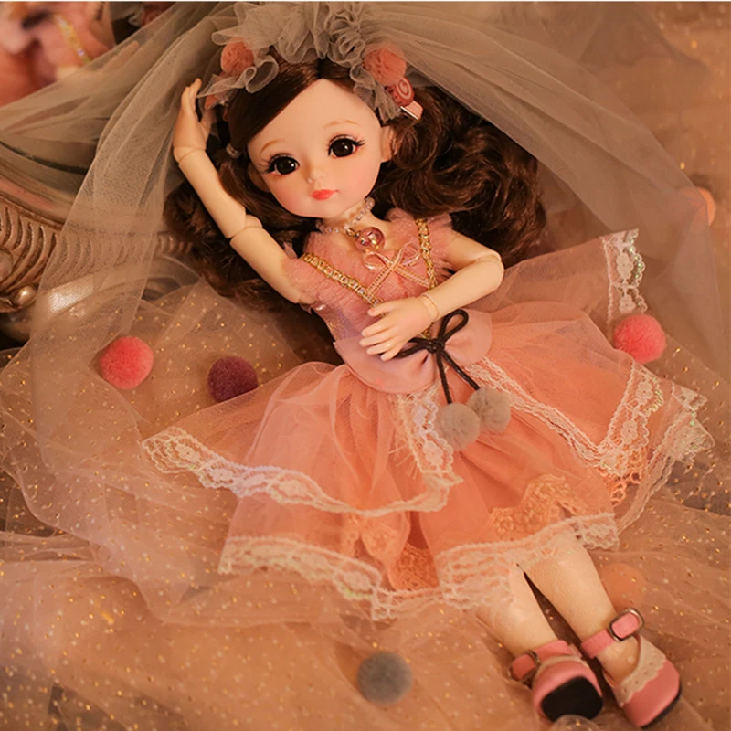 Cute Face 30cm BJD Doll 18 Movable Jointed Pouting DIY Bjd Dolls Princess Toys BJD Round Face long Hair DIY Toy Gift for Girls