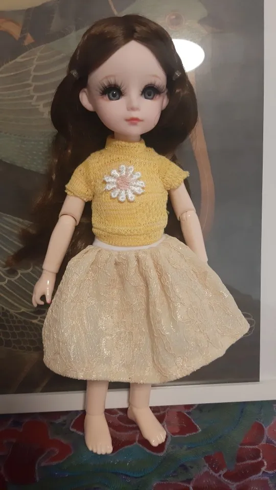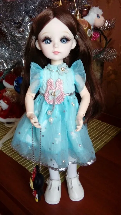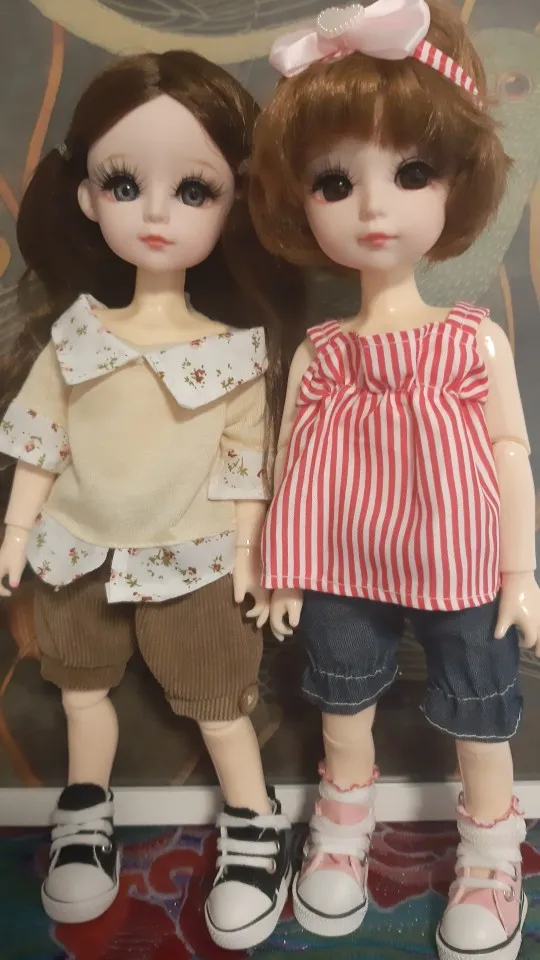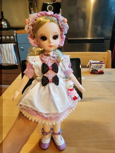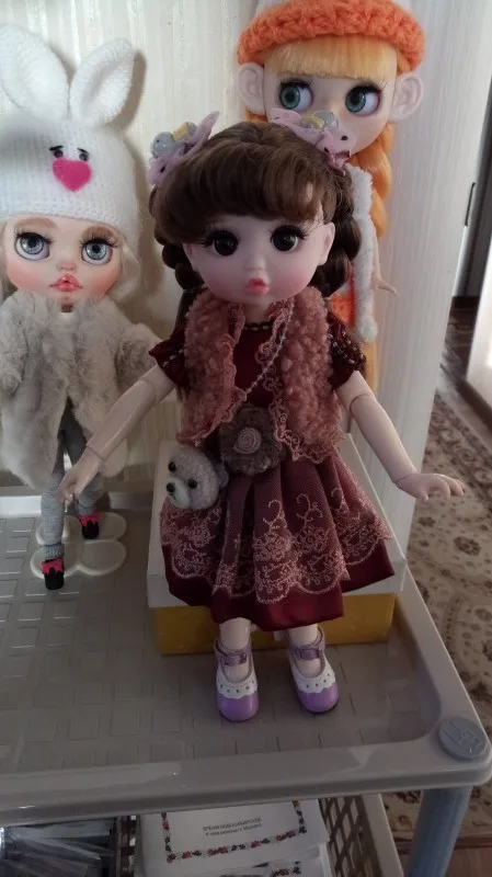 Very good shopping. Quality totally different from the other dolls. It comes with an additional pair of hands. Very high doll quality, including dresses and hair. I prefer the black-eyed girl. It’s pretty big and the dresses on sale on Alibaba can be a little tight. Looks good with the rabbit set 30 cm. Shoes measure 5.5 cm. The only point to the seller to better protect the eyebrows as the transport was crushed.