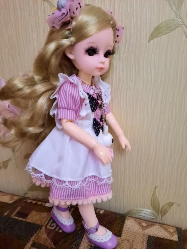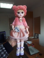 The doll is beautiful, the cilia is huge, very beautiful, the hair is sewn not thick but their many color ash blond. The dress is sewn well, everything is smooth, the seams are not processed, no panties. Two clips with pink bows, the bandage from the head I took without it is better. There was no necklace. In the kit to the doll there are replaceable brushes with straight fingers.