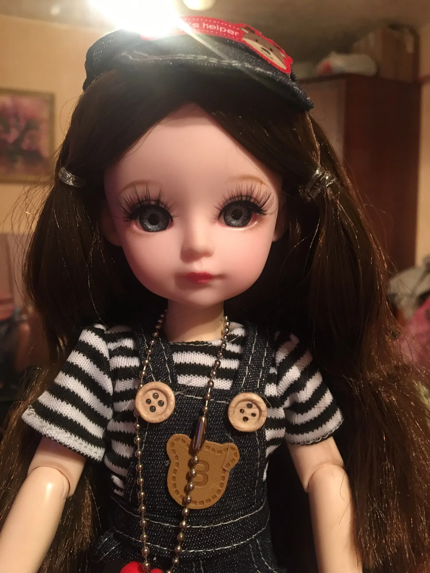The doll is just lovely! The seller is very attentive, quickly answers, goes to contact. Some reviews are not accurate: you can not change any doll eyes, the seller offers with another color of the eyes of other dolls. Thank you very much!