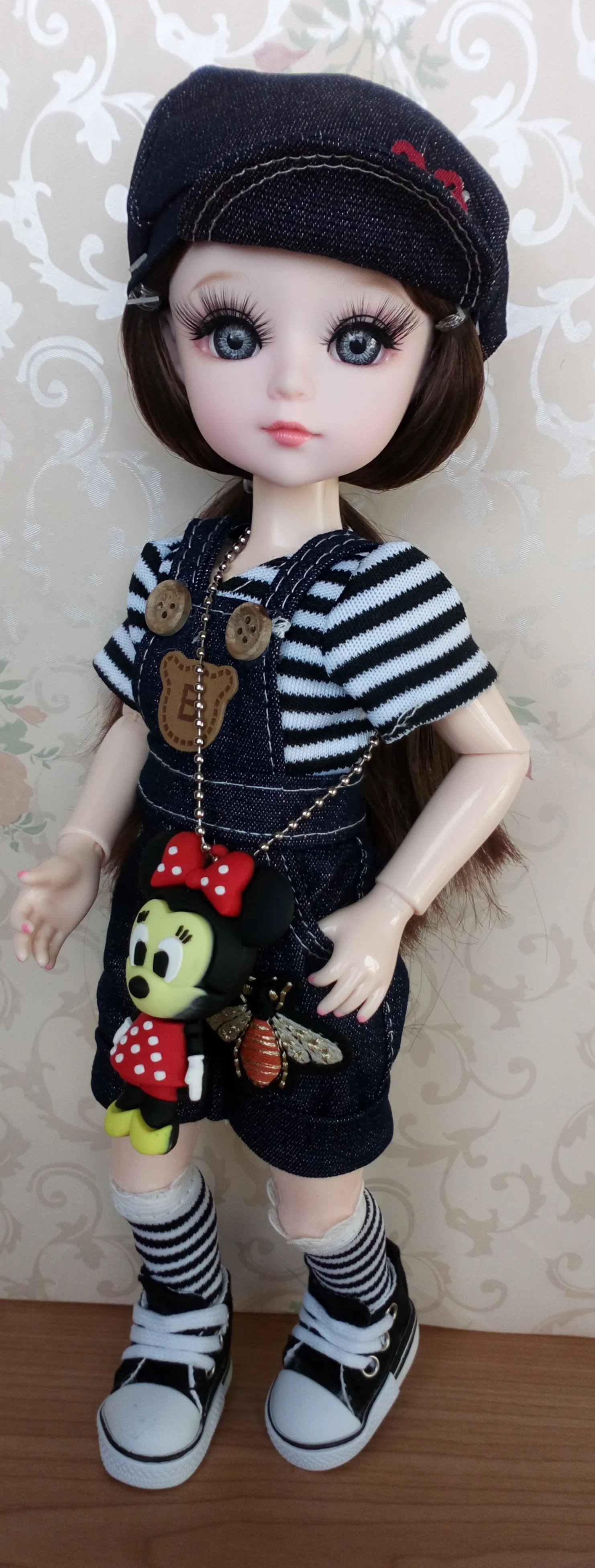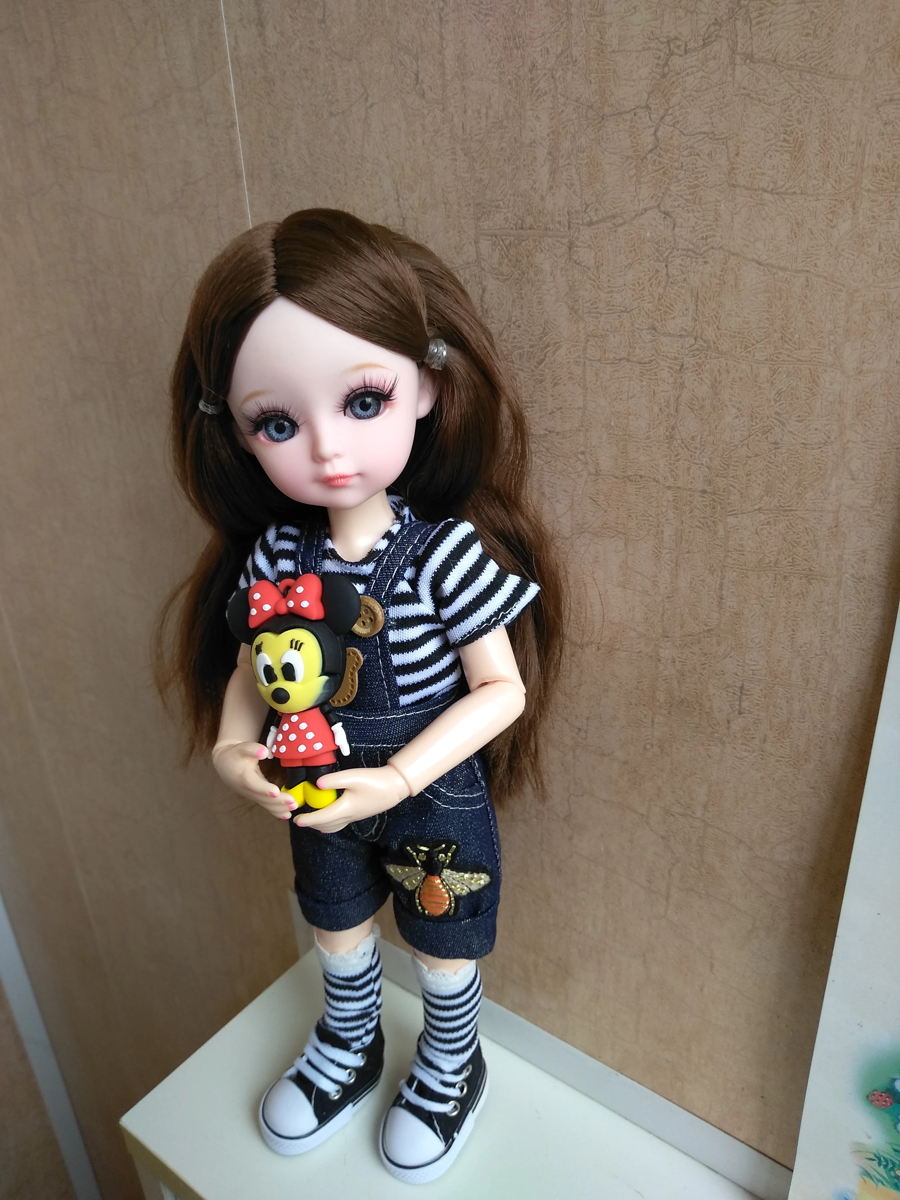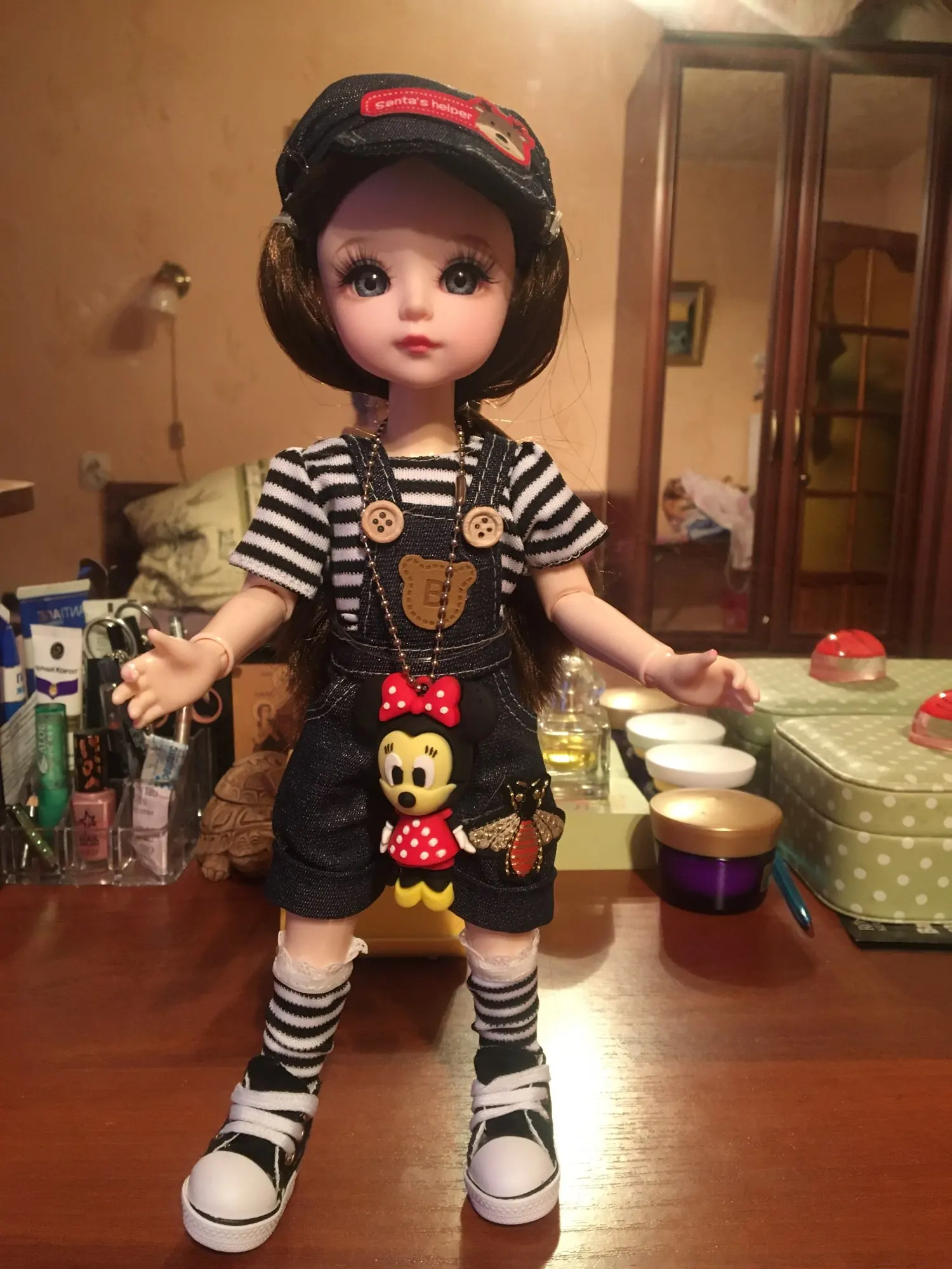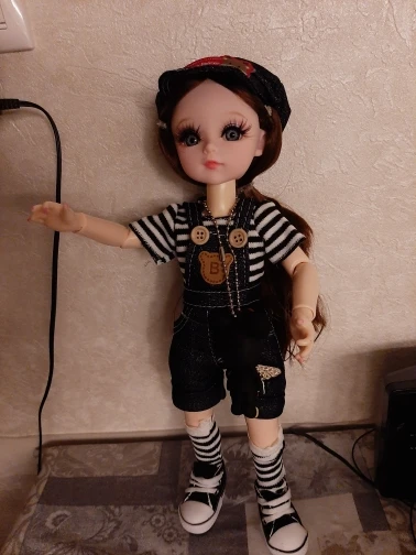 Хорошенькая куколка. Комбинезон пошит не аккуратно, сзади не сходится. Кеды тоже не аккуратно сделаны. Доставка быстрая. Хороший продавец. Рекомендую к покупке!