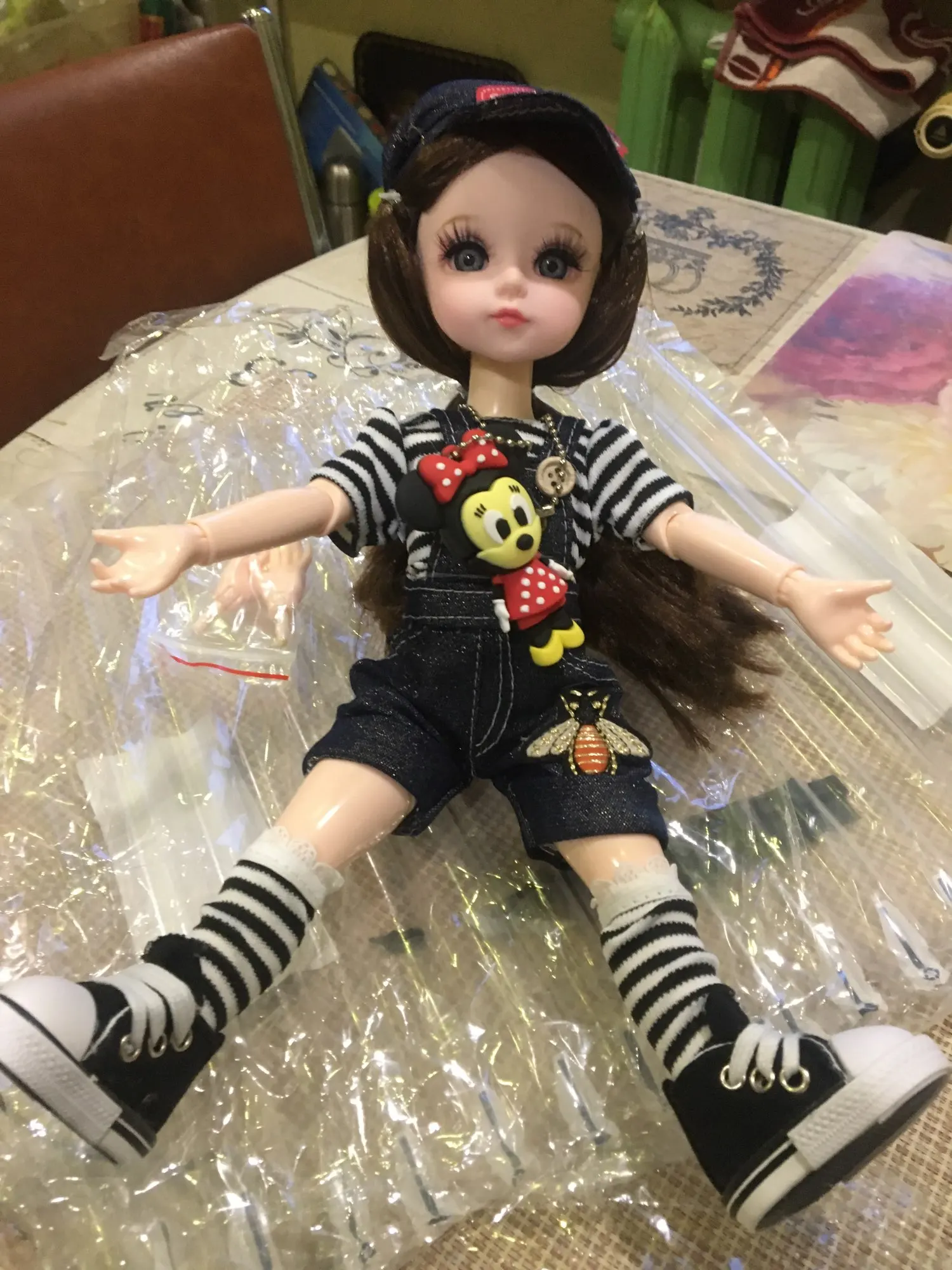 Unusually beautiful doll, charming! Packing, as some write, bomb;))). So there is, a dense air mattress, which protects against any damage. The cap was on the face, protecting the soft cilia from damage. Cilia is in perfect order! Gift from the seller-Mickey-Mouse. Very nice! Definitely recommend the seller! Thank you for the wonderful attitude to buyers! Good luck and further prosperity!