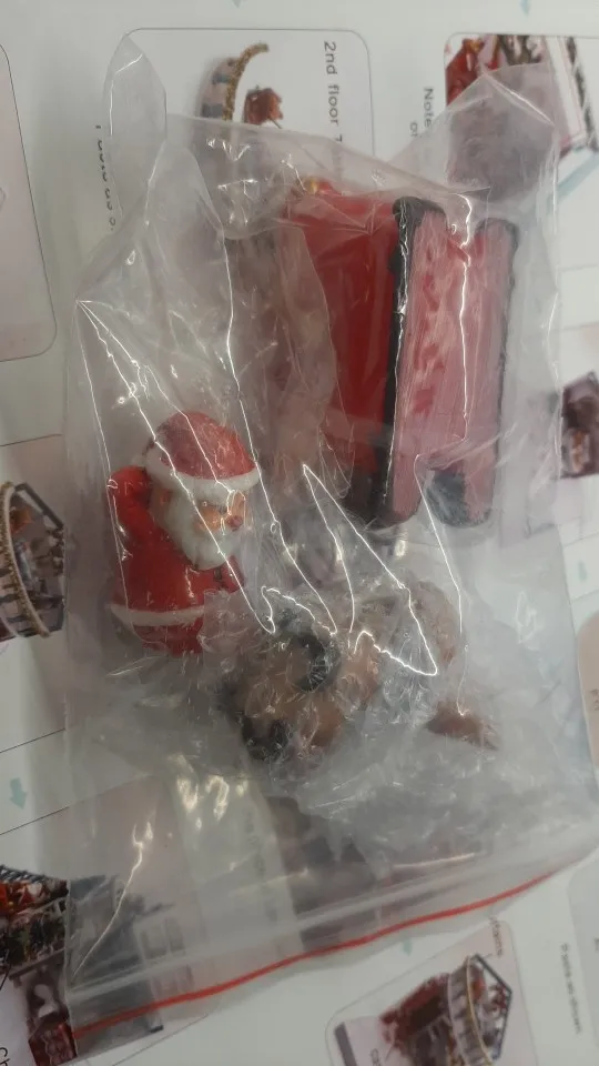 The box is large, heavy. It was a little crumpled, because it was protected only by a navel. There’s a lot of stuff inside, lots of stuff. The instruction is a whole Journal of 22 sheets printed on normal glossy paper, in English. All and pictures, very simple and understandable. Children and Sleigh, who all wrote in place. Shipping fast. Now we have to collect…