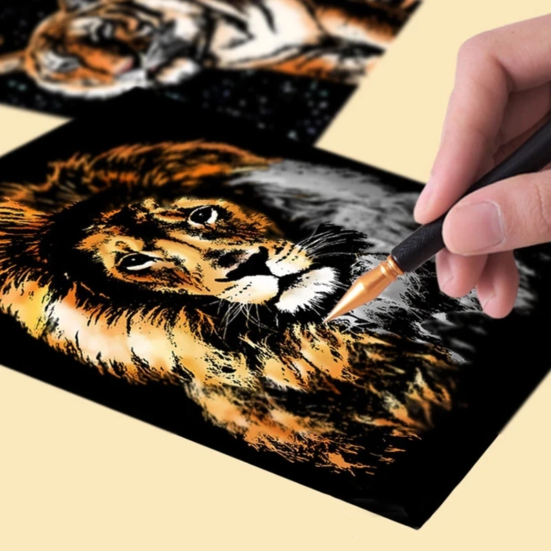 -Feature:4 Pcs/Set 21×29.5 CM A4 Simulation Animal Scraping Painting