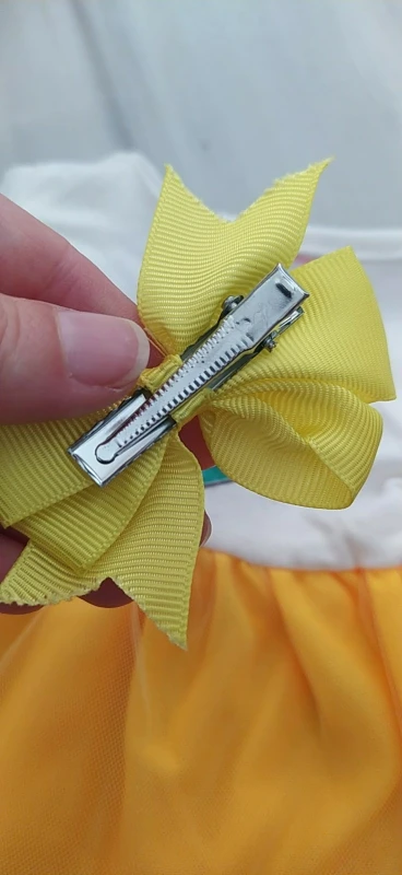 It goes all together, T-shirt and skirt. The T-shirt is soft Lycra, the skirt also and above it is soft tulle. The very nice bow