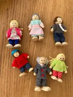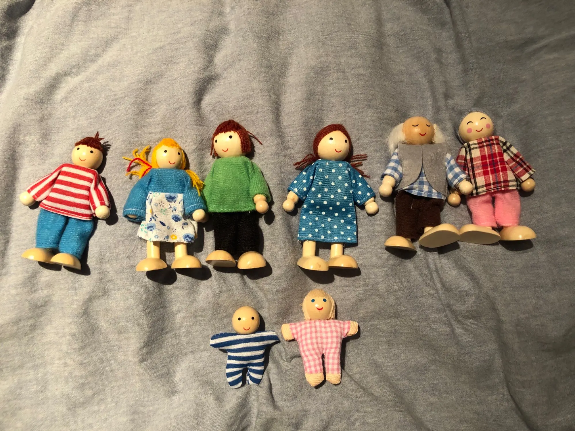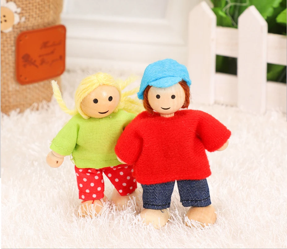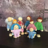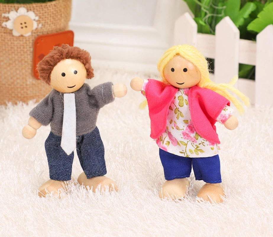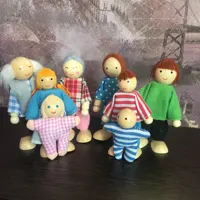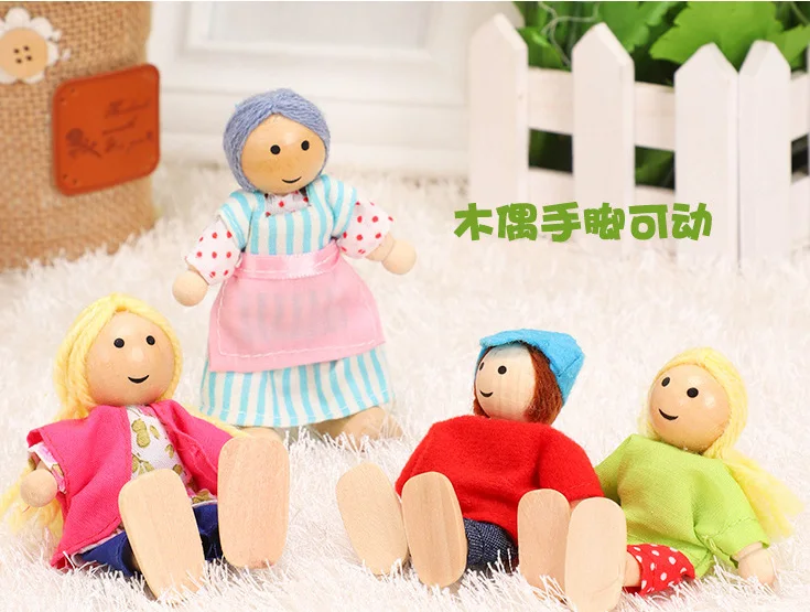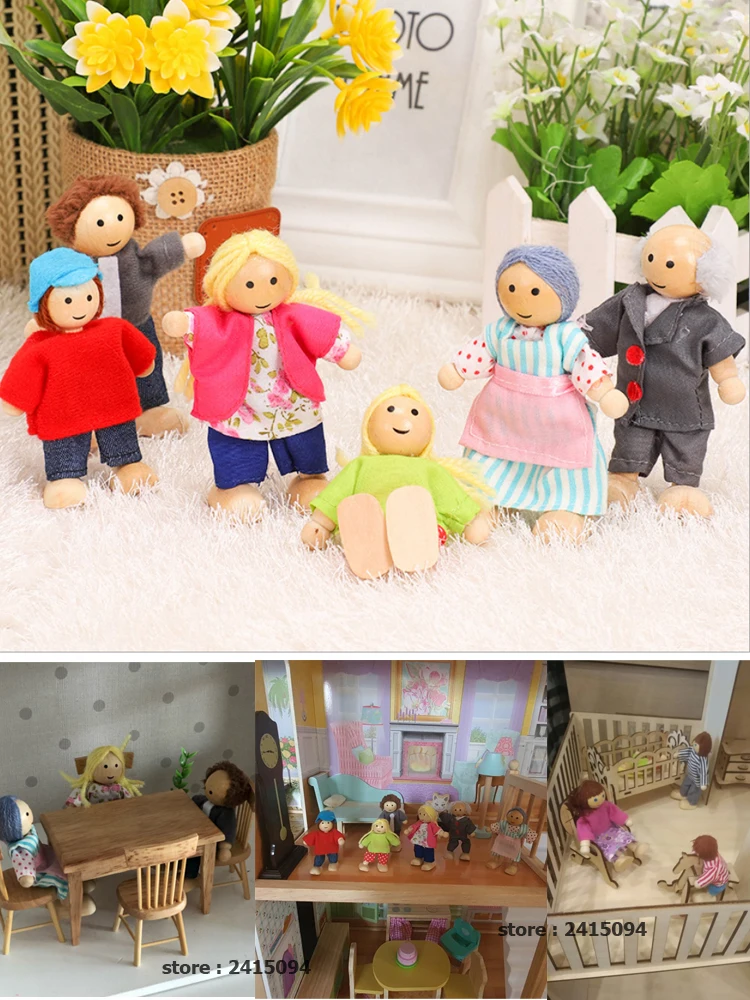 Happy doll family miniature 6 people set toy wooden jointed dolls children muppet pretend toys story-telling dressed characters