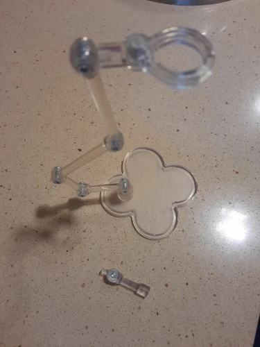 as described, works perfectly, is made nice plastic, adjust very well on the base, the junctions are strongs, I use to sand a Blyth and keeps it firmly, is so easy to adjust. the shipment was super fast and very well wrapped. super happy with it.