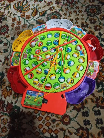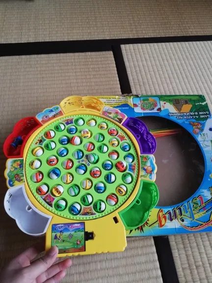 Не очень приятный звук при прокручивании. Ловить рыбок непросто даже взрослым