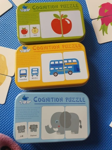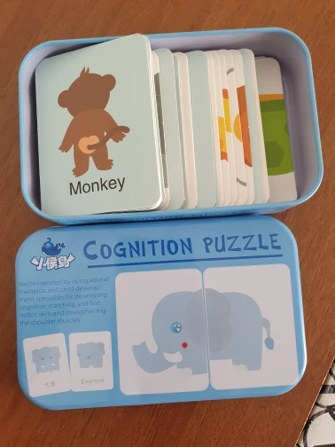 I love them! Buy the one with the animals and the one with the food. I like animals better because it’s easier for my peque (21 months) to find your other half. Cute drawings, cute colors and the ideal can to keep them. The Item Holder says they are made of wood, not so, they are from a hard cardboard that looks good quality!