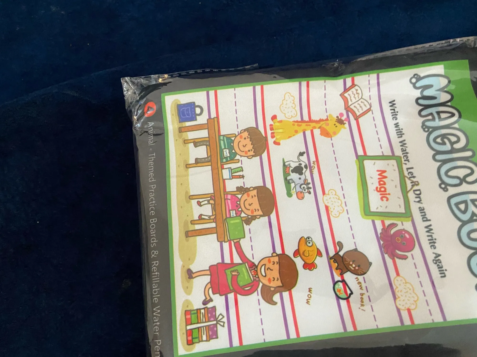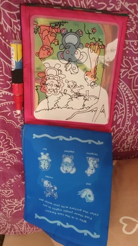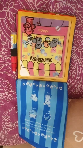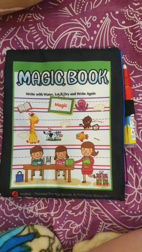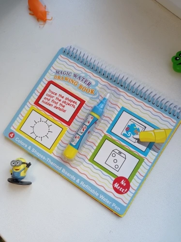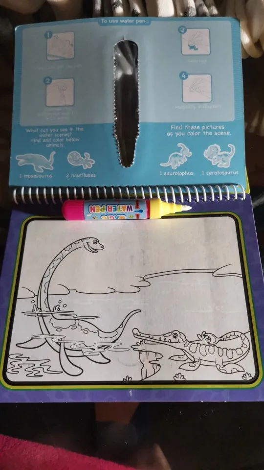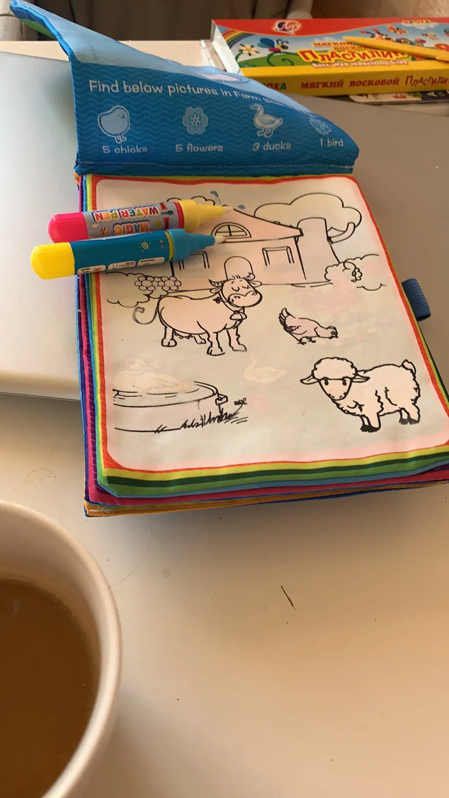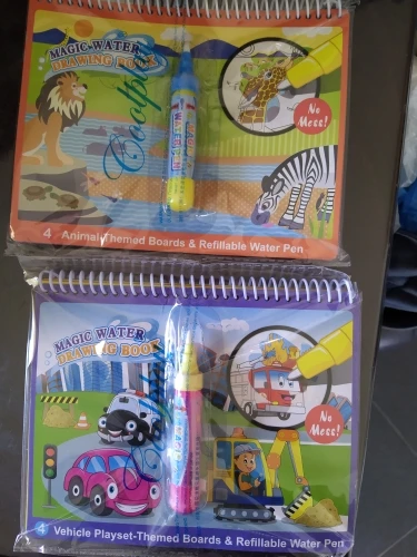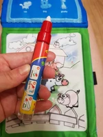An interesting book, water is poured into the pen and you can draw. The child is very pleased.