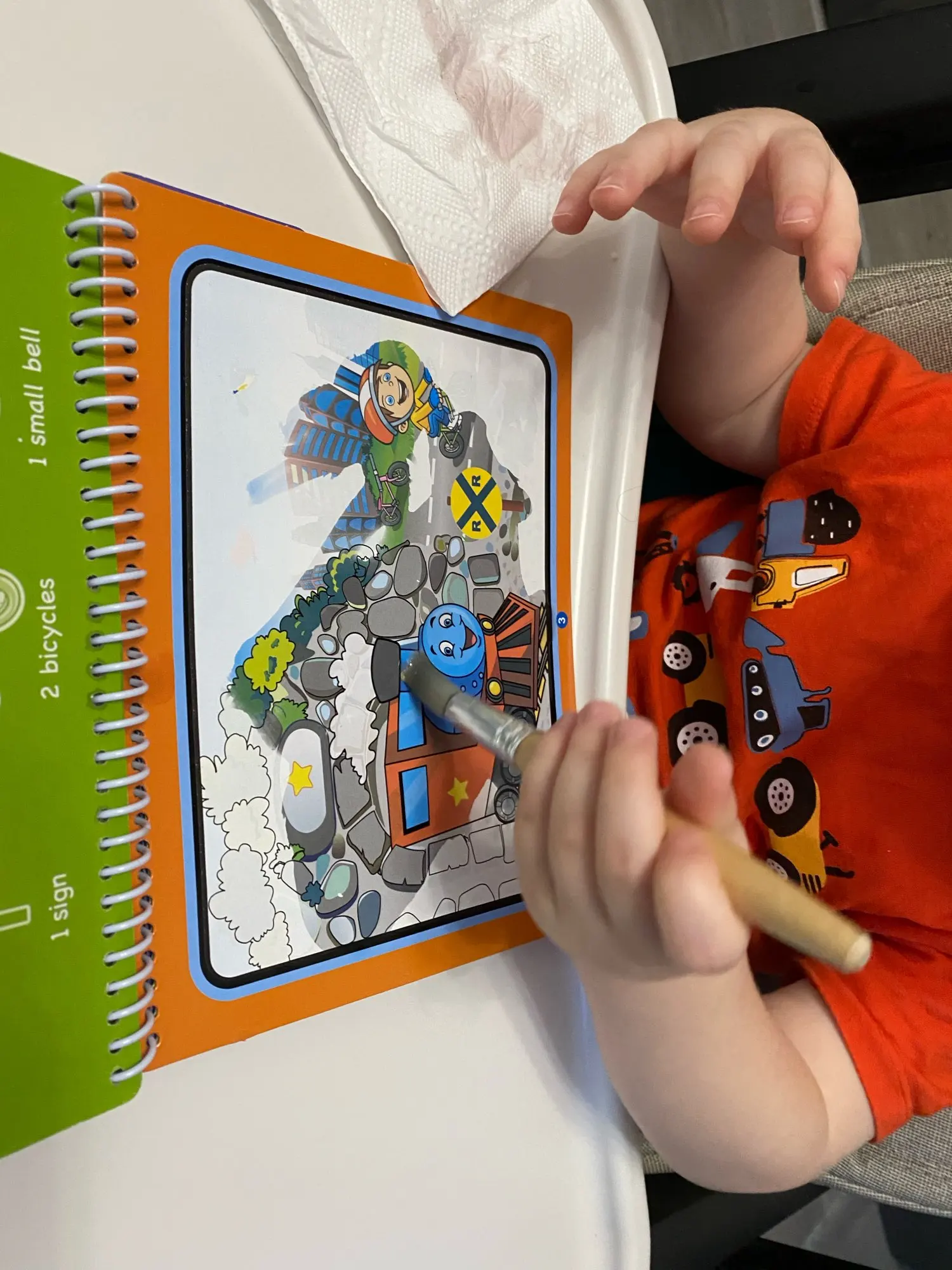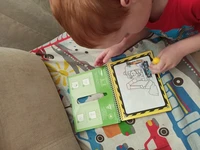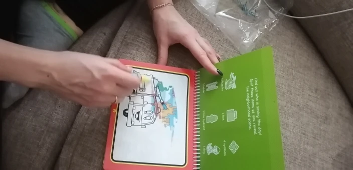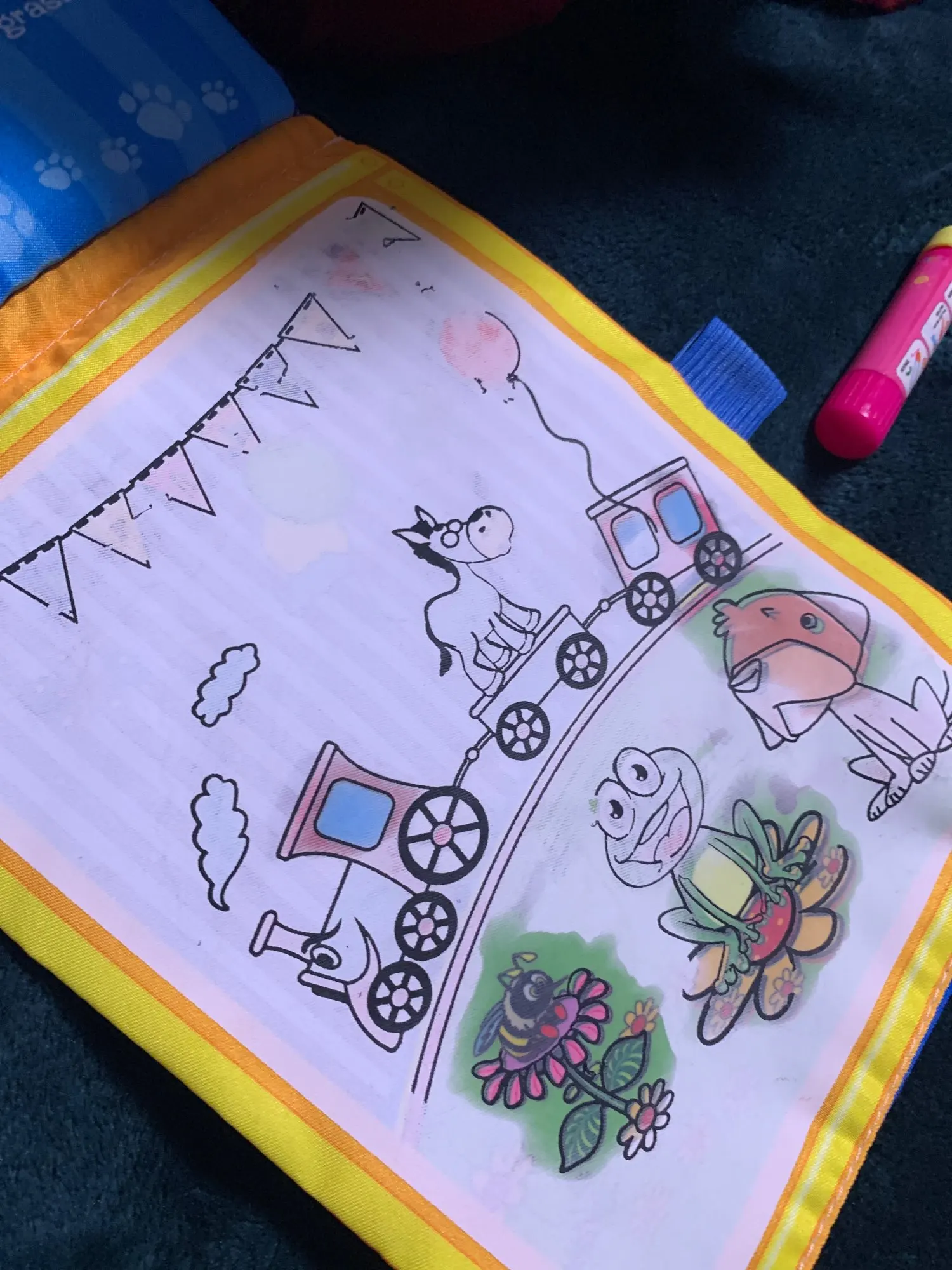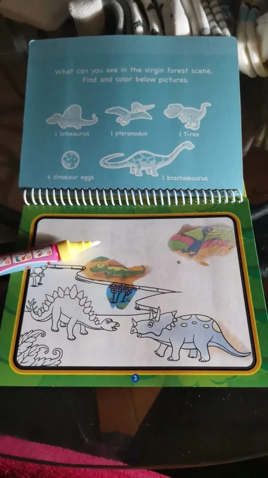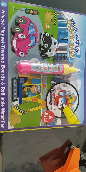 An interesting book, water is poured into the pen and you can draw. The child is very pleased.