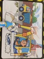 Хорошая водная раскраска. Брал с машинками. Пришла целая, без повреждений, без запаха. Только карандаш надо размочить хорошенько, а то начинает царапать поверхность.