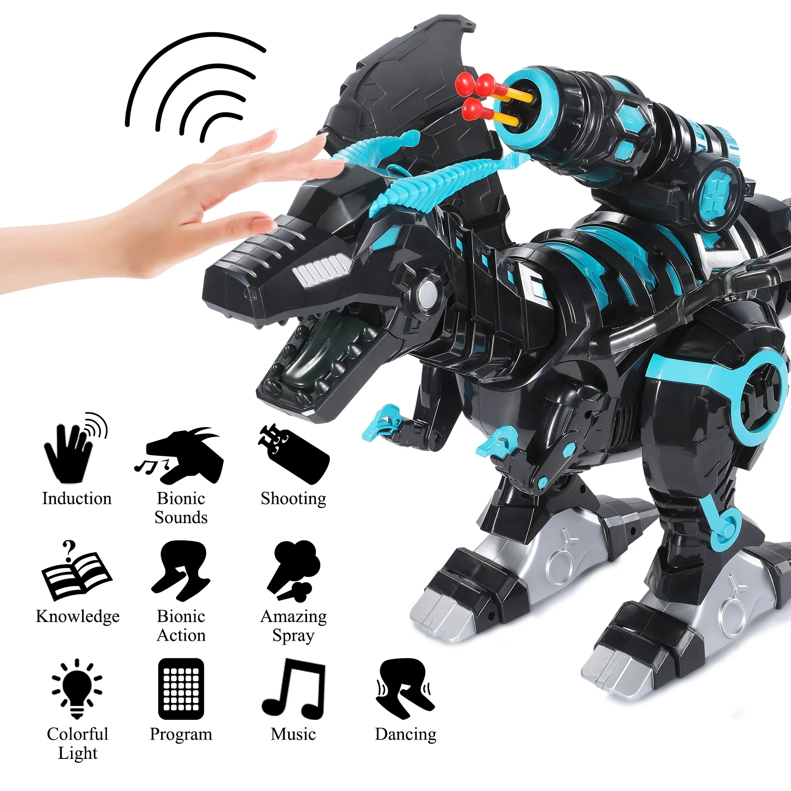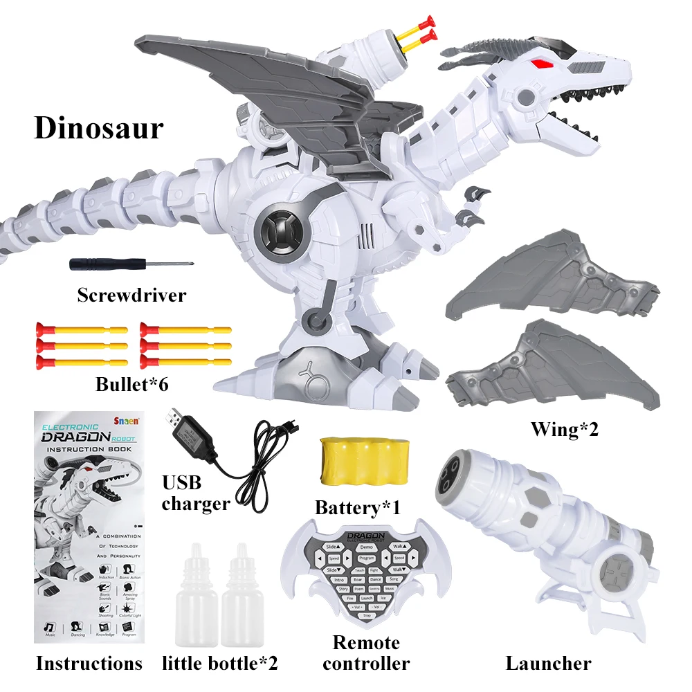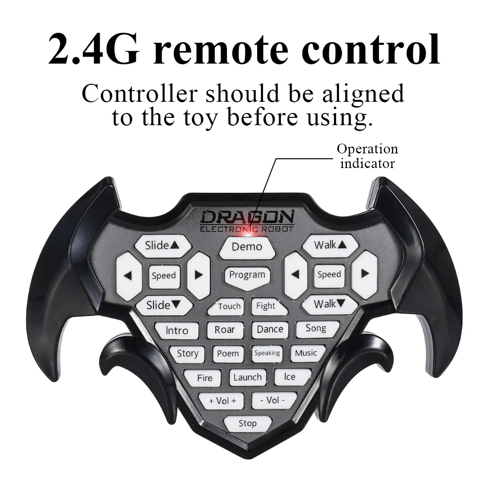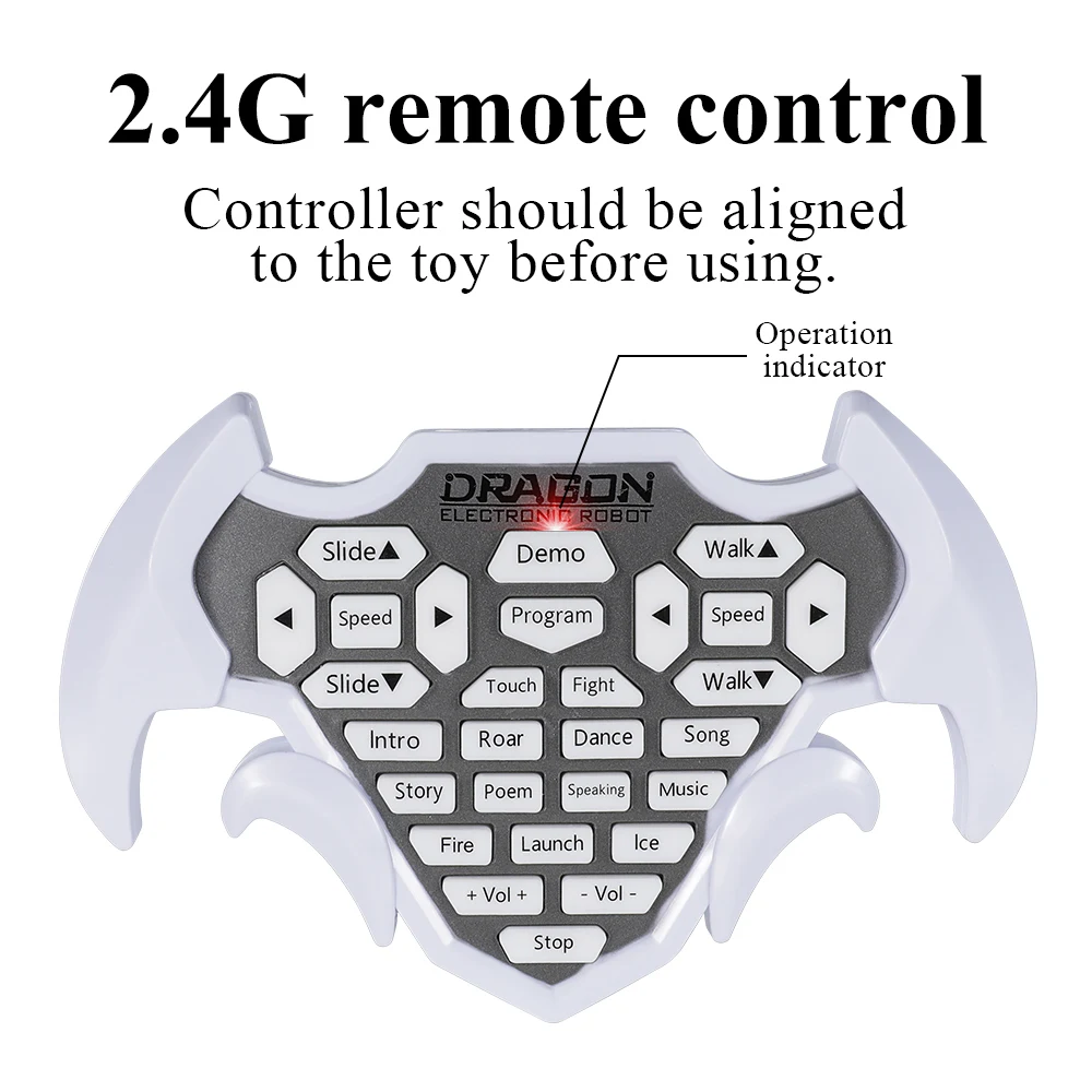 • Programming for Your Electronic Pet: How to tame this fierce monster? Programming can help! It will run any commands you gave if you use the programming function. There is a prompt tone when you press the Program key, then press the other function buttons one by one (less than 20 commands), and finally press the Program key and your cool dino pet will begin to demonstrate.