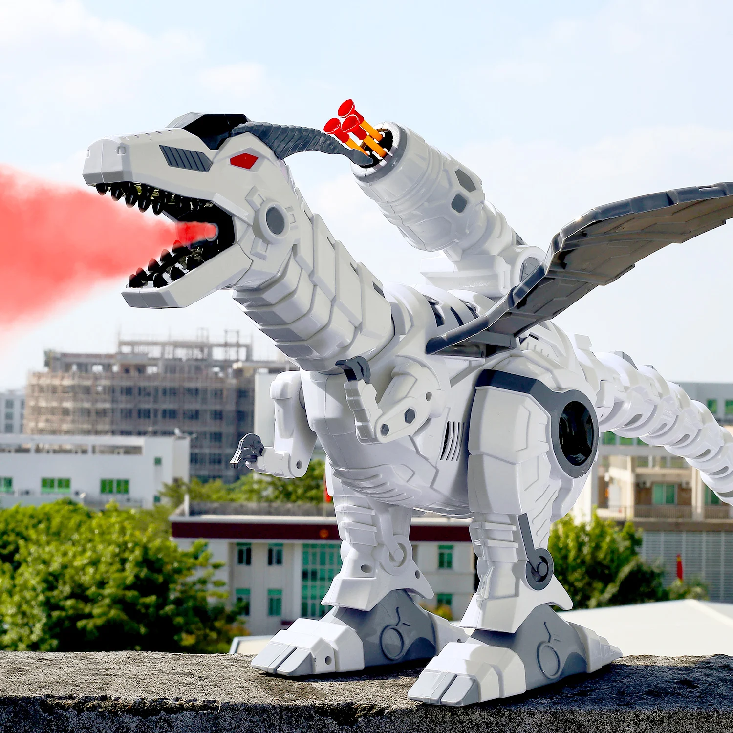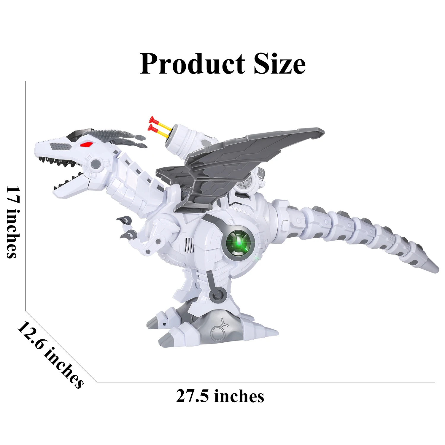• Soft Bullet Missile Launch: This super mechanical dragon not only has big wings but equipped with a powerful ejector which can lunch 3 missiles in a time. Install the launcher on its back, then load the soft bullets and press the button “Shooting” to fire! The shooting range can reach about 17ft, DO NOT AIM AT EYES OR FACE! 6 bullets are included.