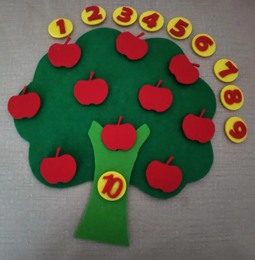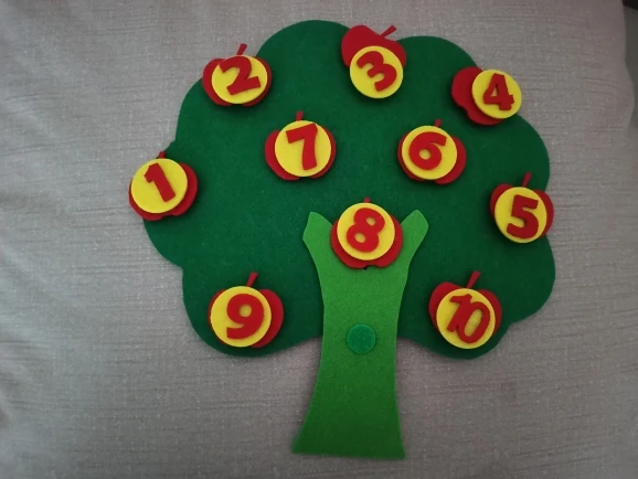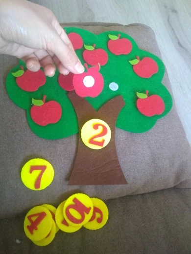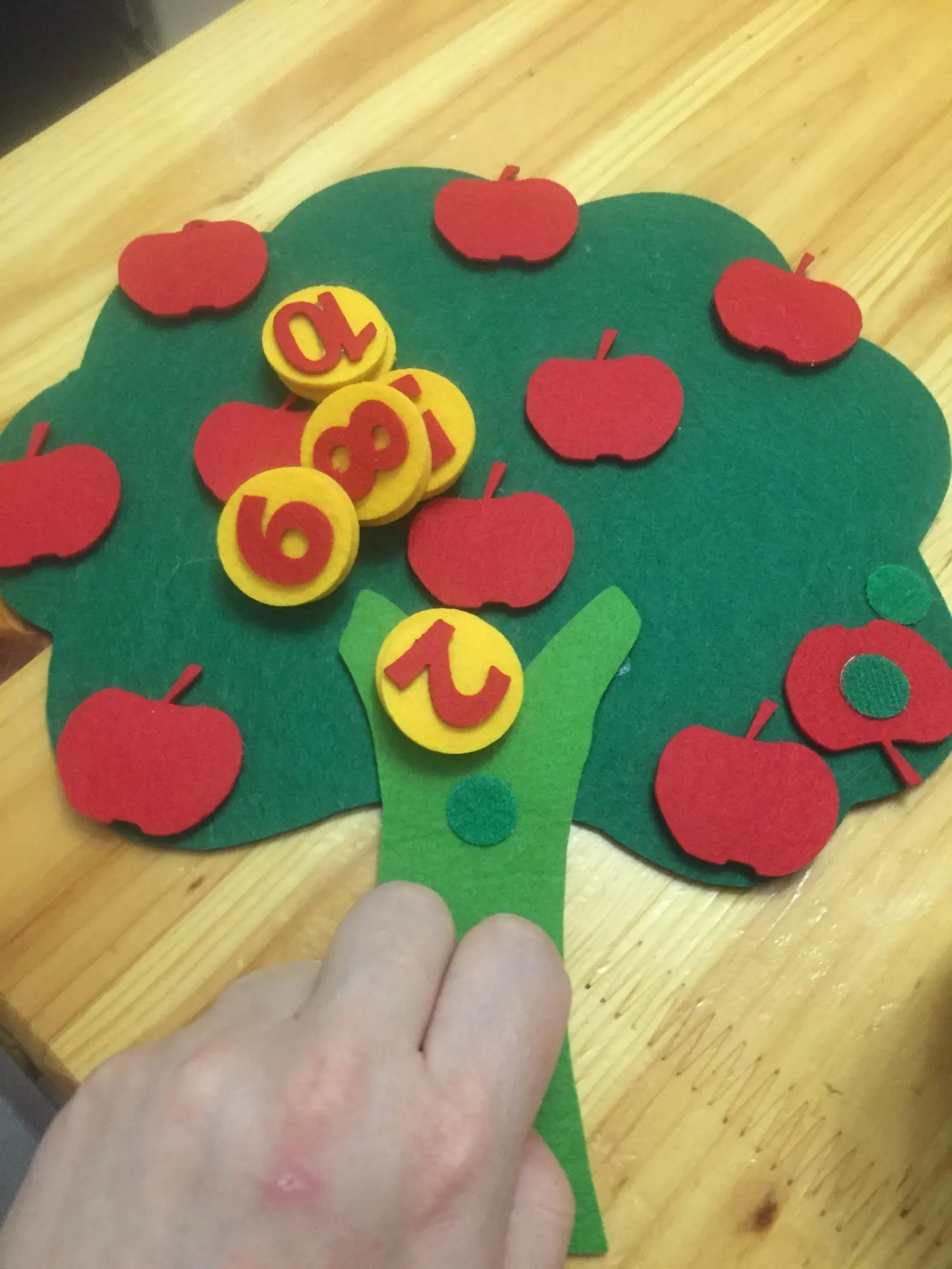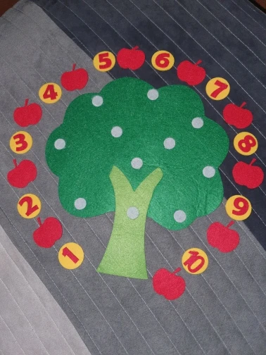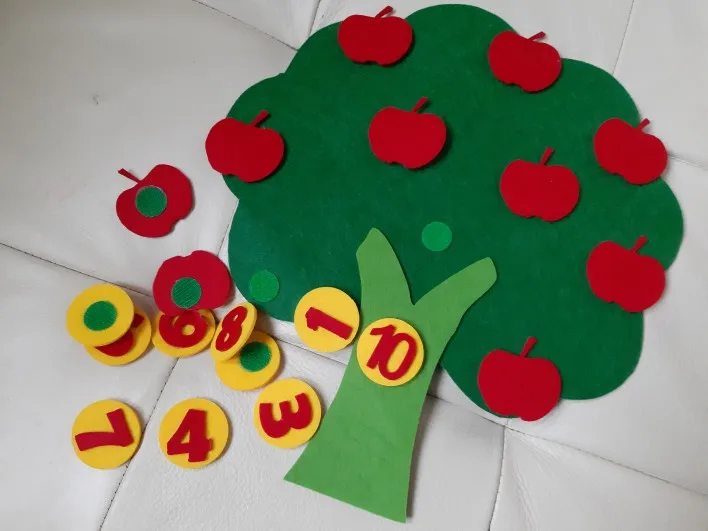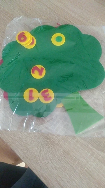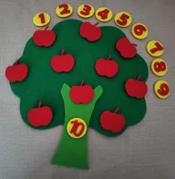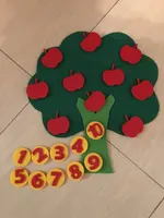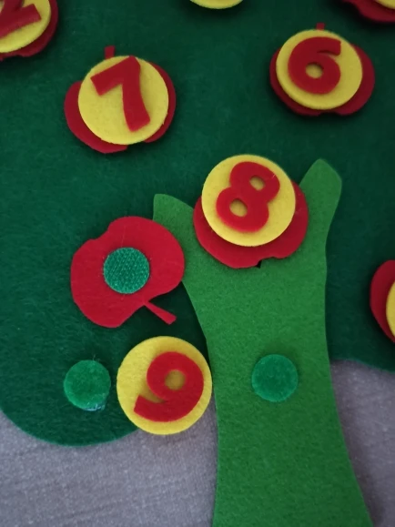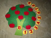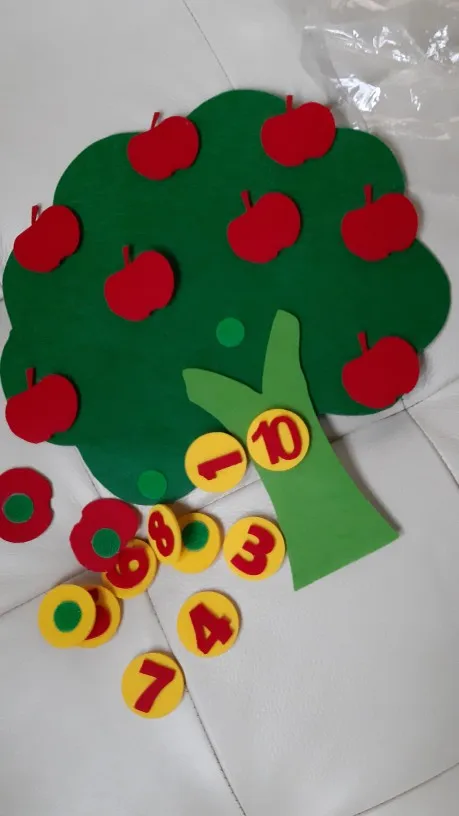 Before St. Petersburg, before the month was connected with other parcels, the tree is made of fine felt, made small Velcro, the photo shows the numbers, I only had a ciphra 10,, in general, teaching children is very interesting,