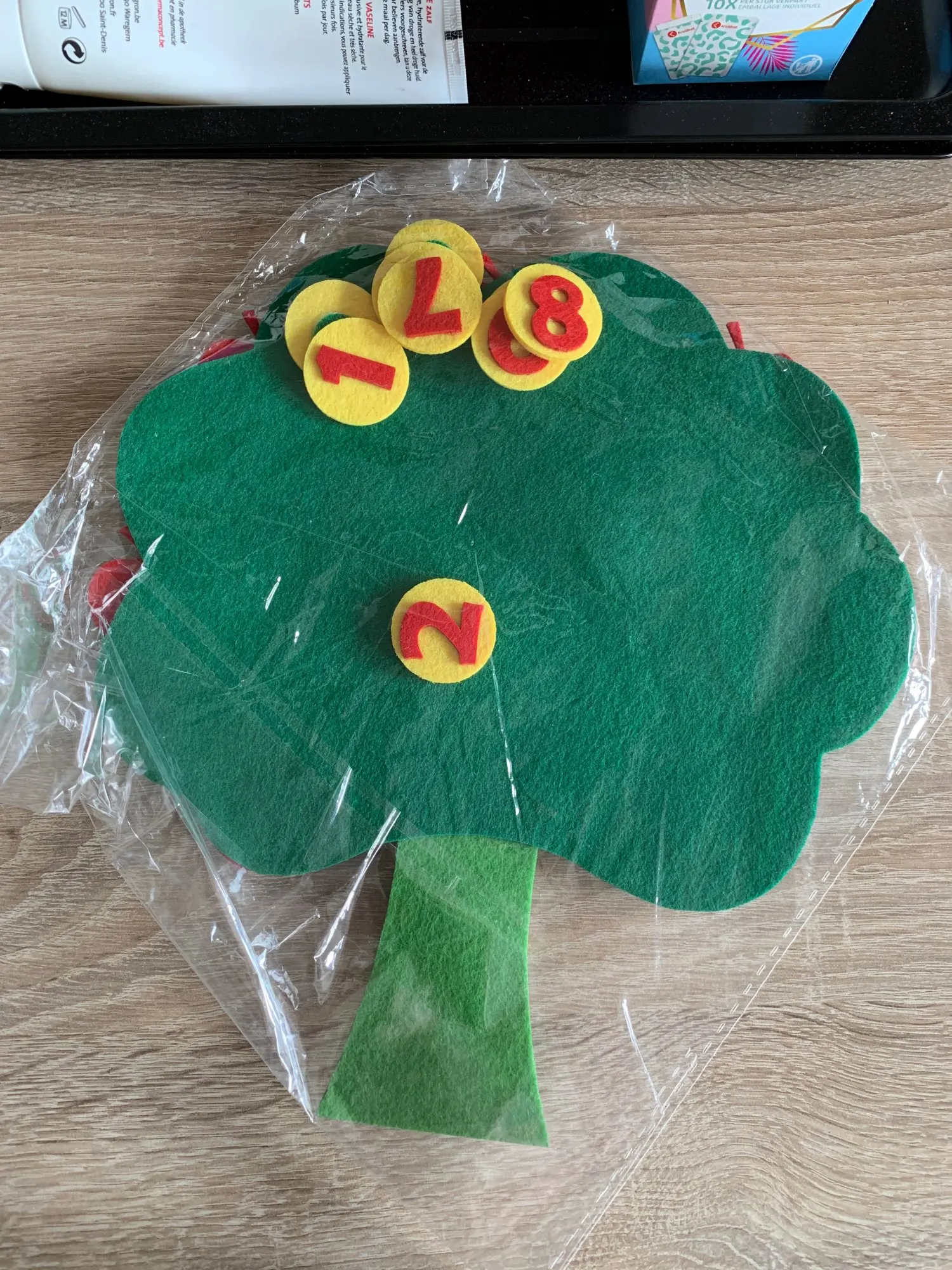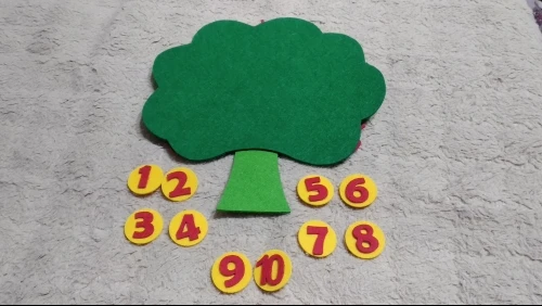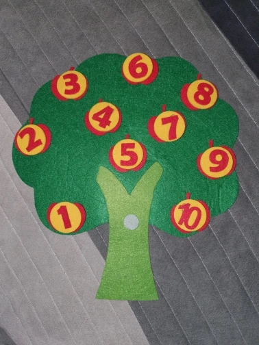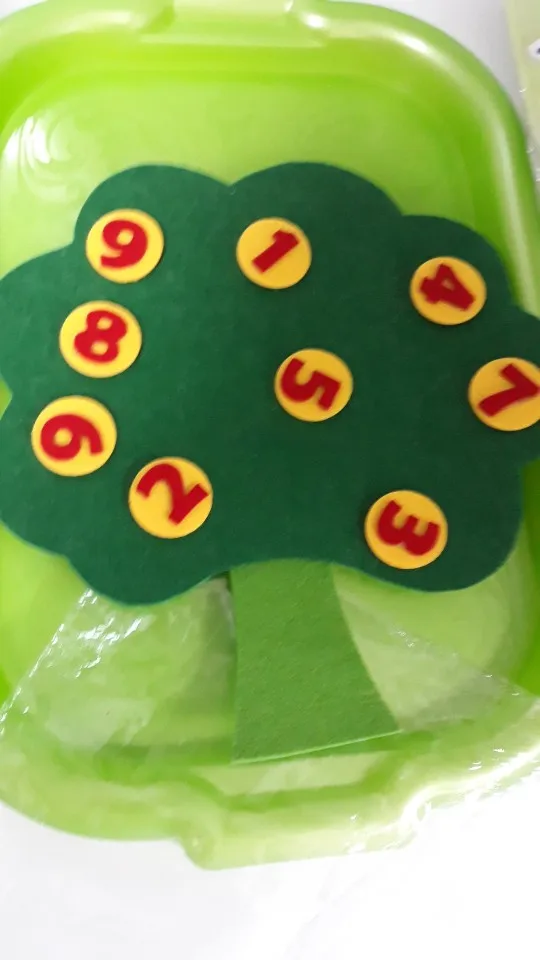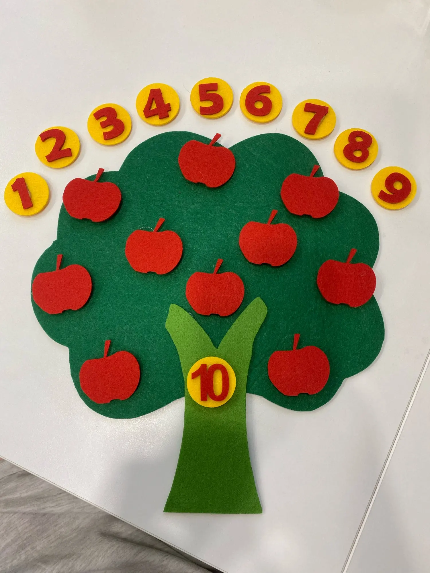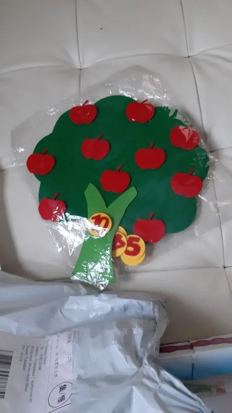 Before St. Petersburg, before the month was connected with other parcels, the tree is made of fine felt, made small Velcro, the photo shows the numbers, I only had a ciphra 10,, in general, teaching children is very interesting,