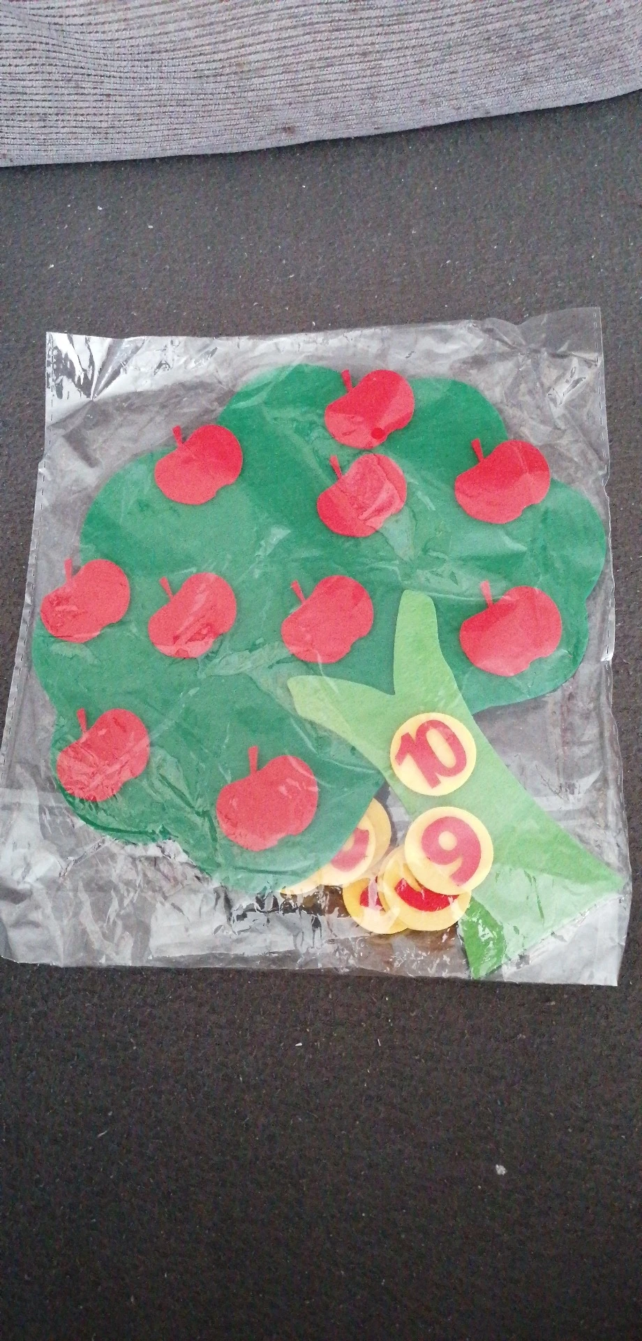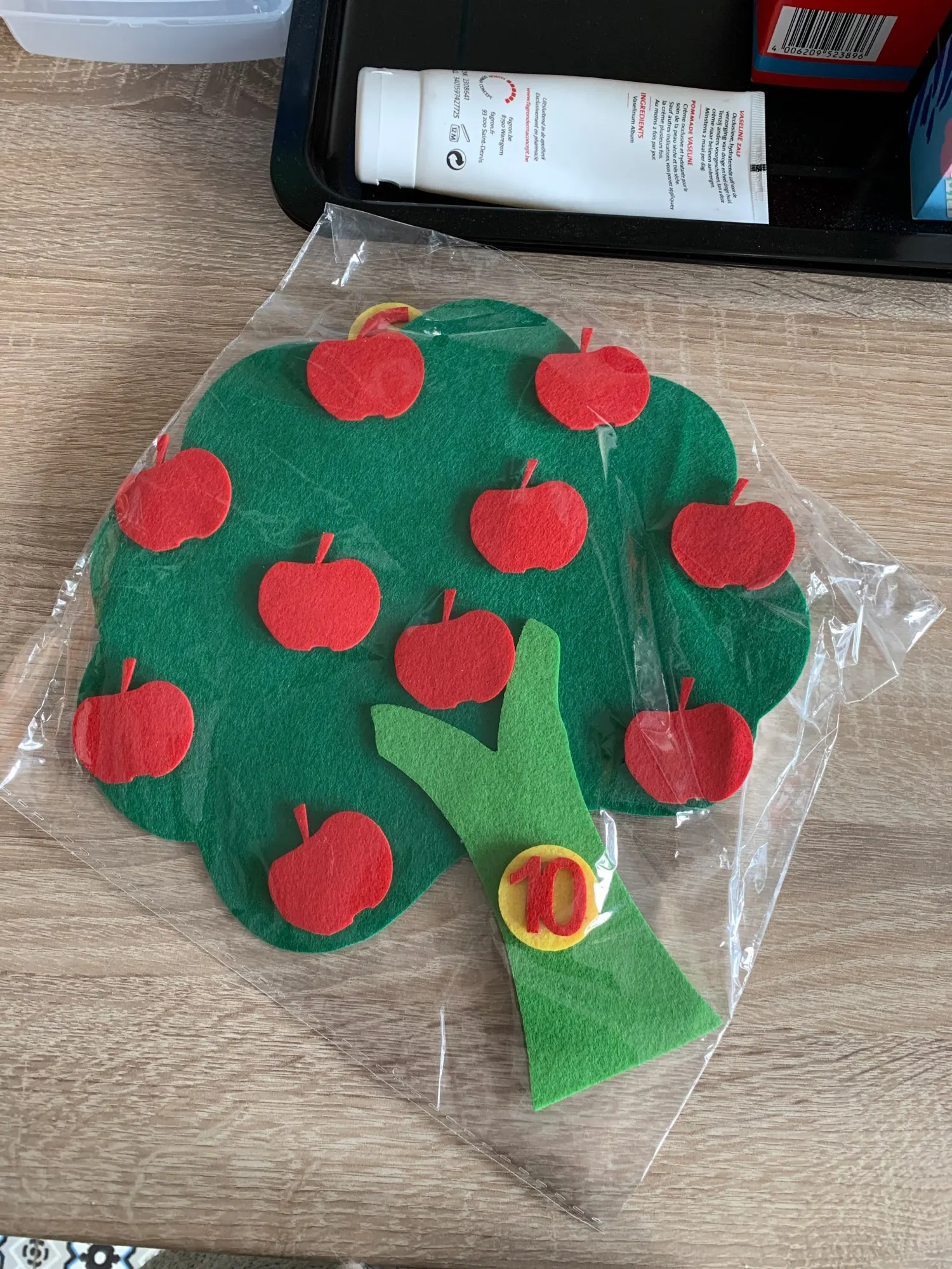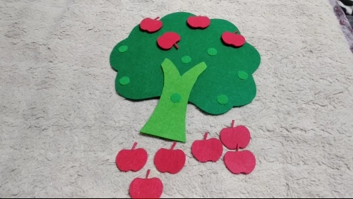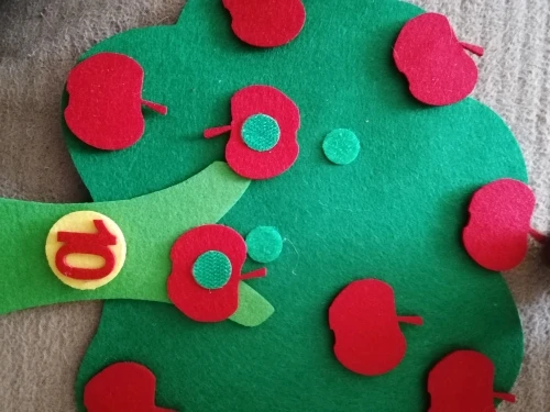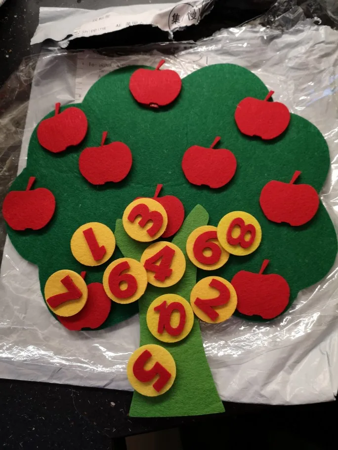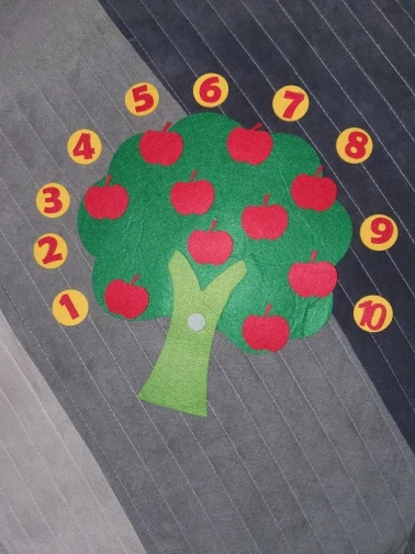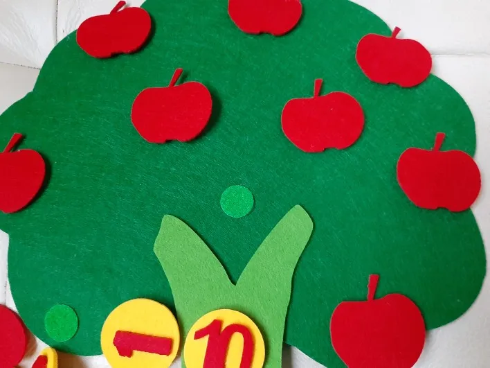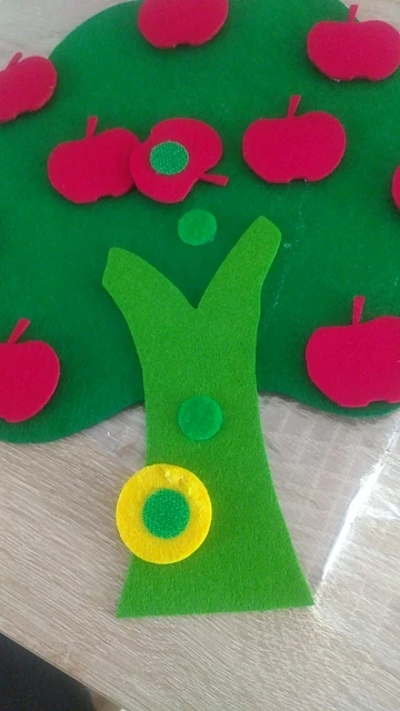 Well done! Figures and apples on Velcro. Big enough. Felt is not bad.