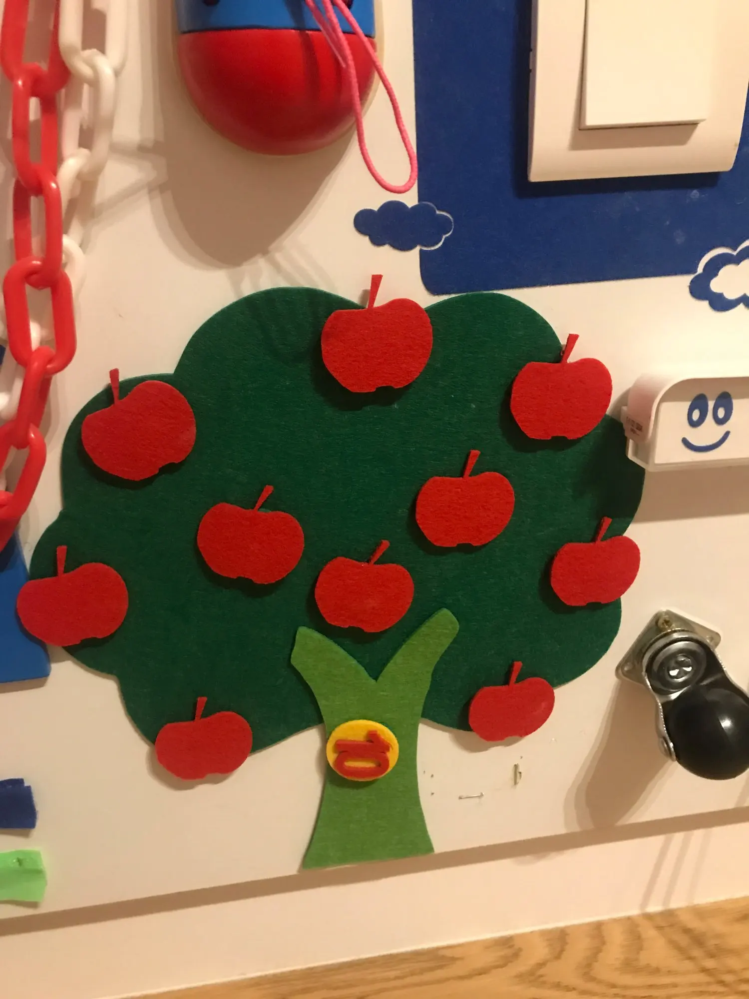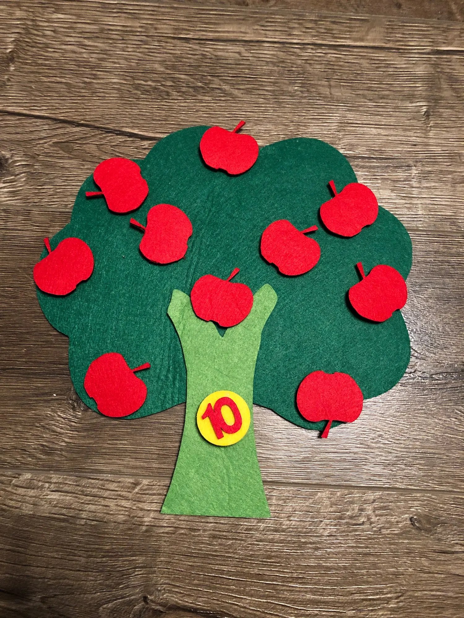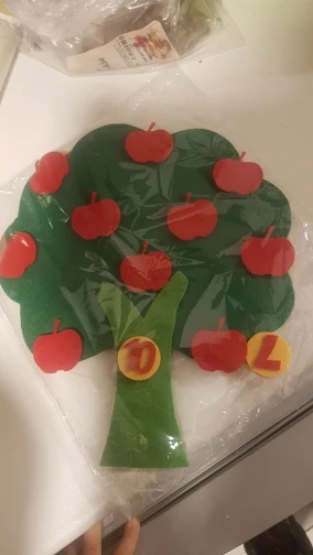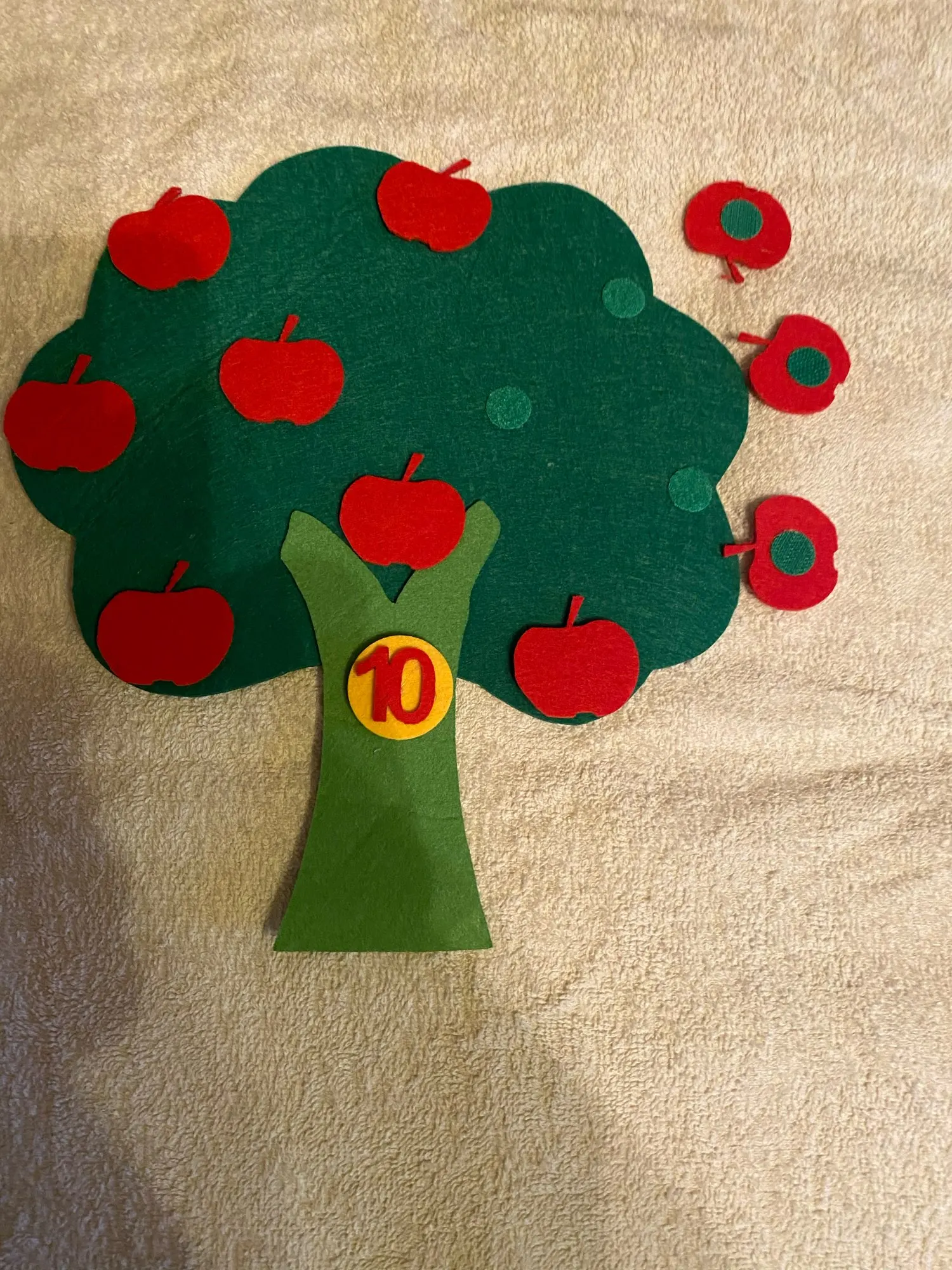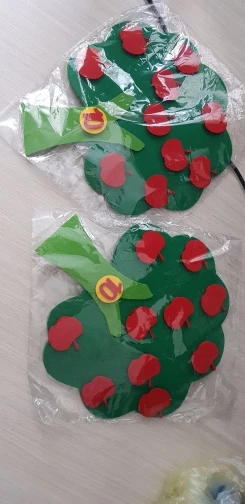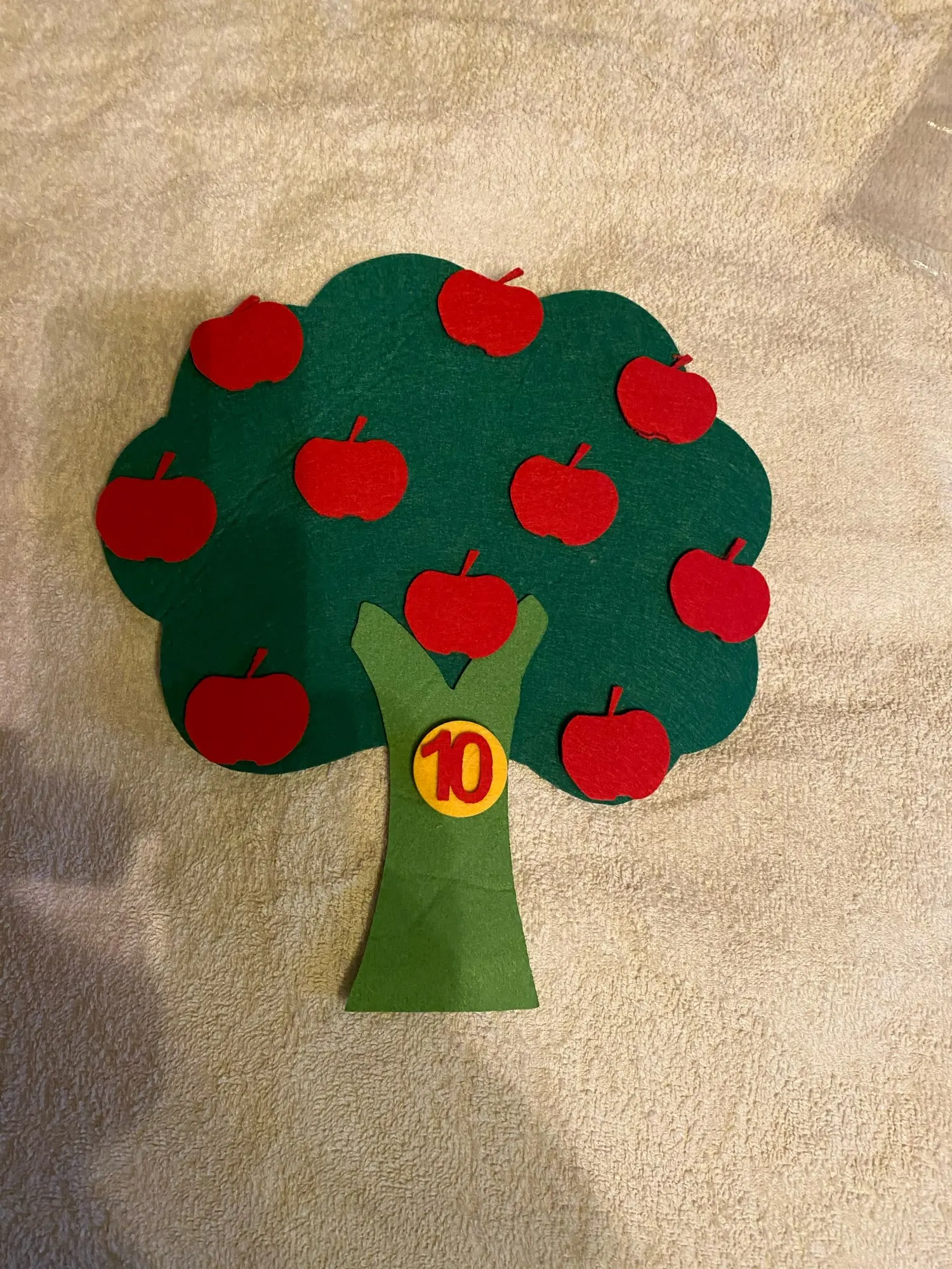 Well done! Figures and apples on Velcro. Big enough. Felt is not bad.