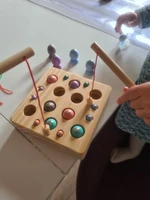 Дитині дуже сподобалося. я спочатку думала, що не по віку купила, але вона вже начала грати 6м. Тренує моторику рук, витягує рибок. Прийшло дуже швидко, за 1 тиждень.